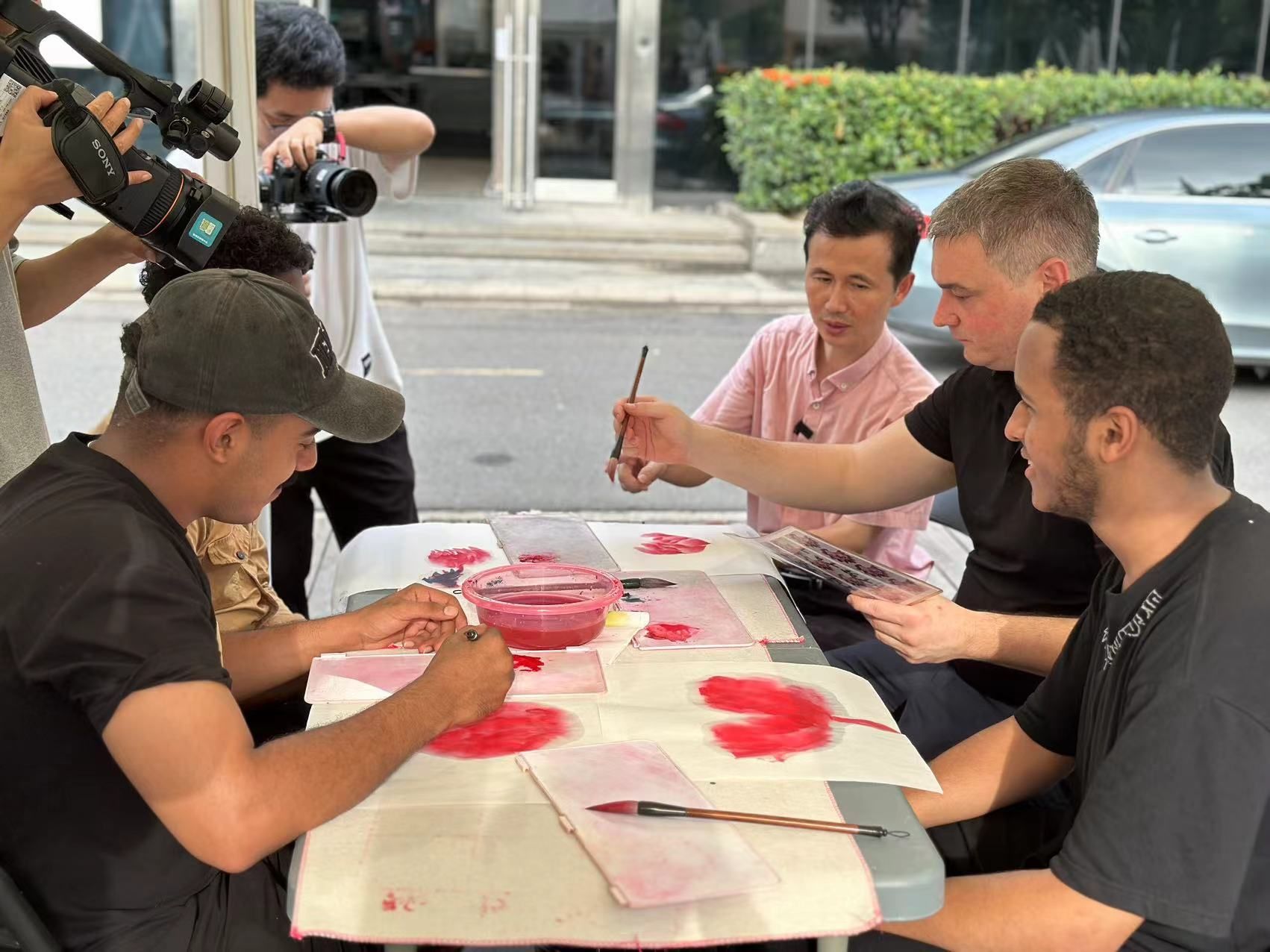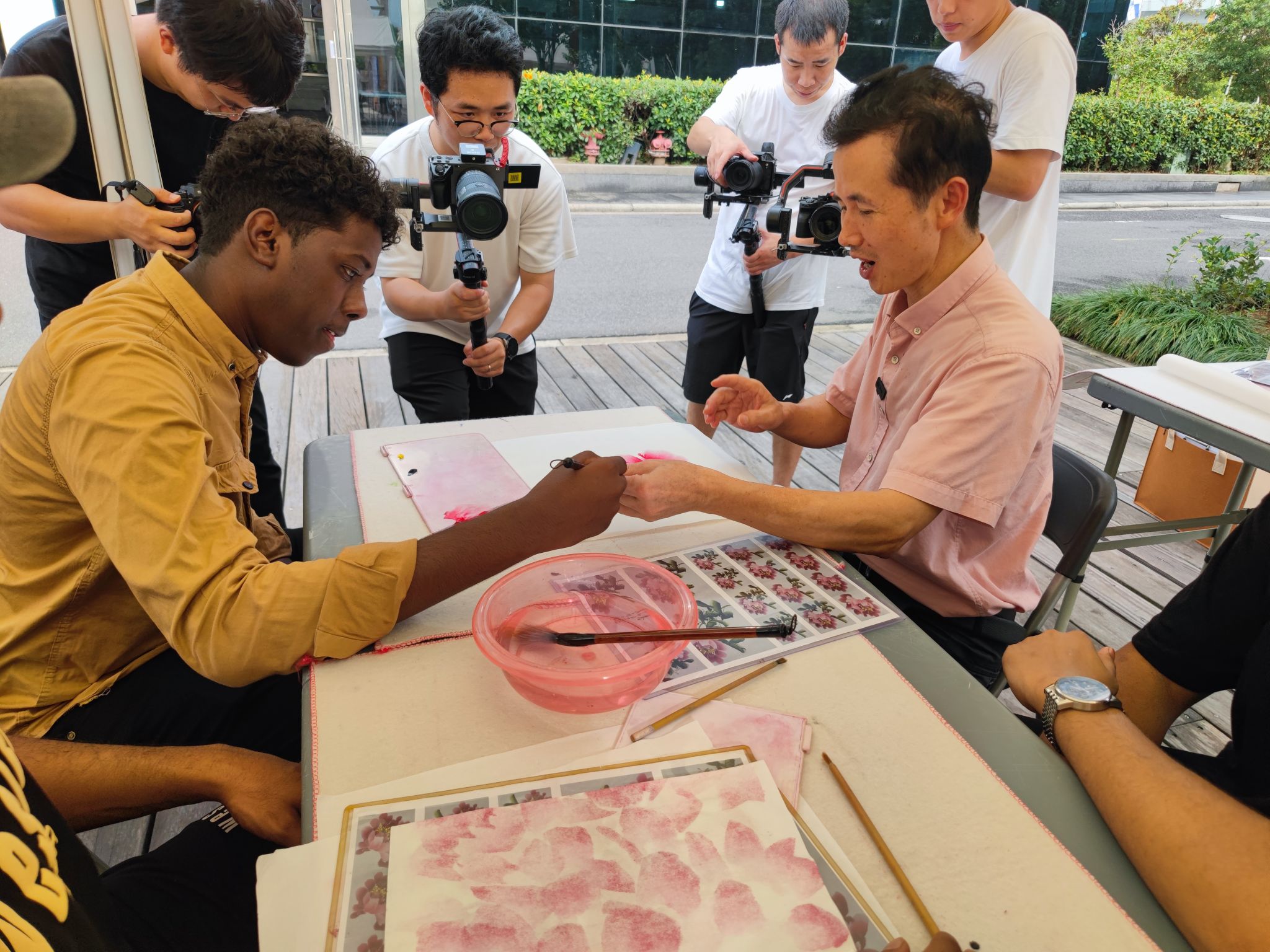在体验中国传统文化的活动中,同学们有机会亲手绘制扇子,这是一种独特的艺术体验。在扇面上尝试中国水墨画,学习如何调配色彩,绘制竹子、荷花等传统图案。尽管大家可能之前没有接触过中国画,但在专业老师的指导下,能够逐步画出自己喜爱的图案,如竹子、草和梅花等,这些都是中国国画中的经典元素。经过老师的教学后,大家不仅能够亲手制作出属于自己的扇子作品,还能深入了解中国扇子文化的丰富历史和艺术价值。