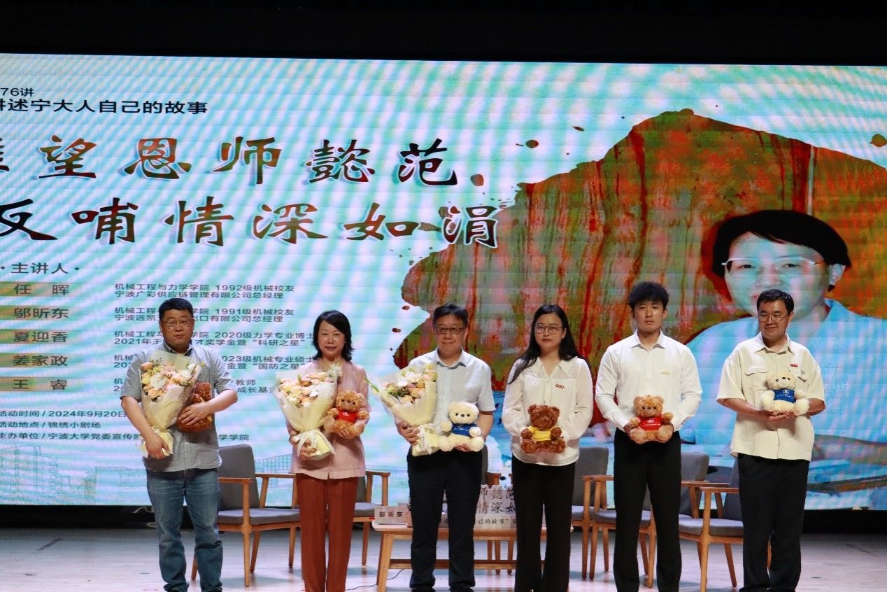 承办的“讲述宁大人自己的故事”系列讲座第76讲“雅望恩师懿范,反哺情深如涓”在锦绣小剧场开讲。宣传部、工会、团委、学生处、机械学院等部门相关负责人及王雅娟老师的家人代表出席,学院获“王雅娟育才基金”学生代表、2024级新生代表、兄弟学院学生代表等近300名学生参加活动。