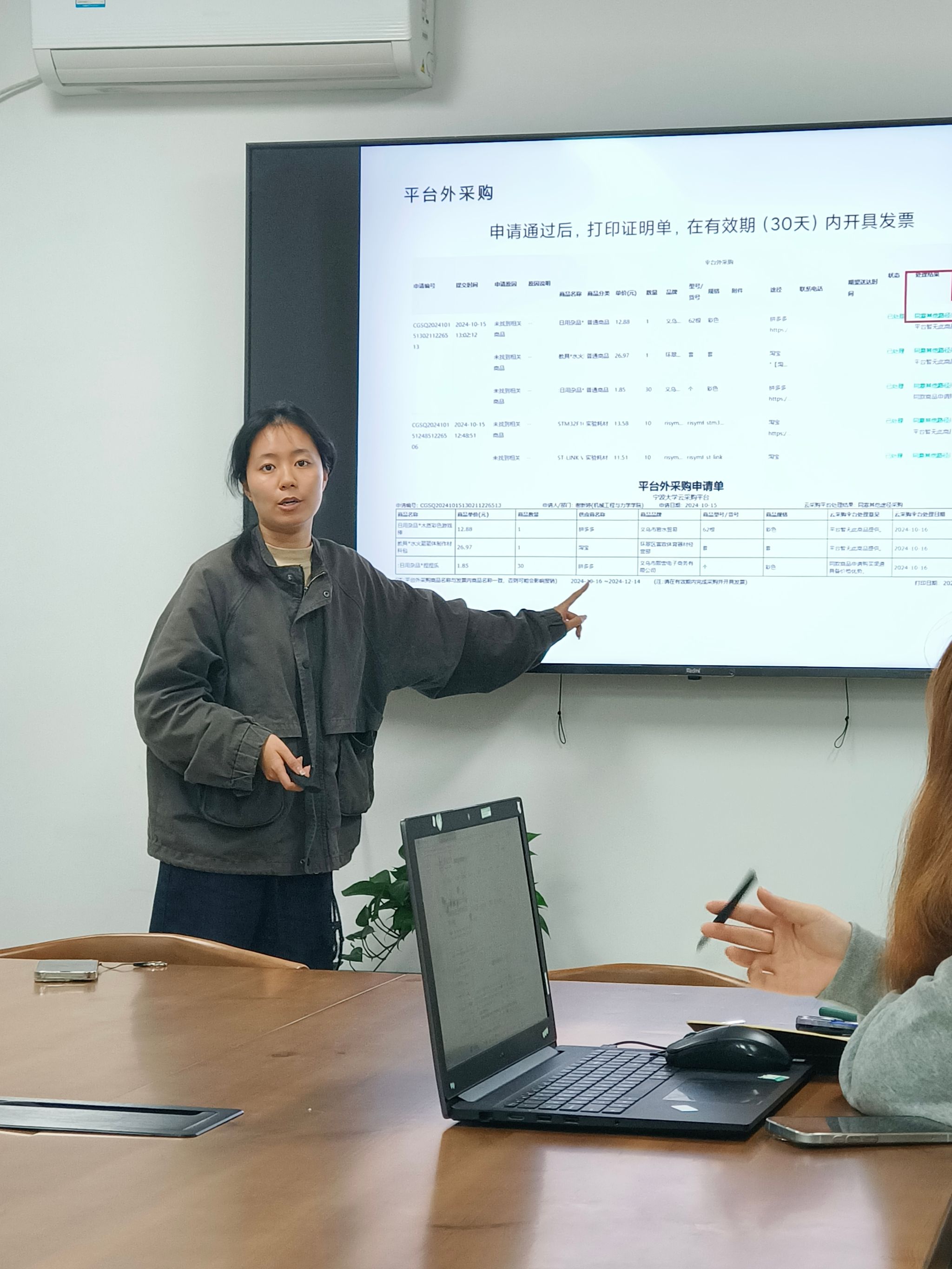 团委副书记潘婧老师来为大家培训。因近期活动多、报销需求大,潘婧老师详细介绍了相关流程和注意事项。强调需六项材料,包括活动发票、车票等,需纸质版且信息完整。介绍了平台采购和平台外采购的流程及要点,如权限设置、发票与采购时间顺序等。还说明了现金支付、对公转账等情况,为同学们在活动经费使用上提供了专业指导。
