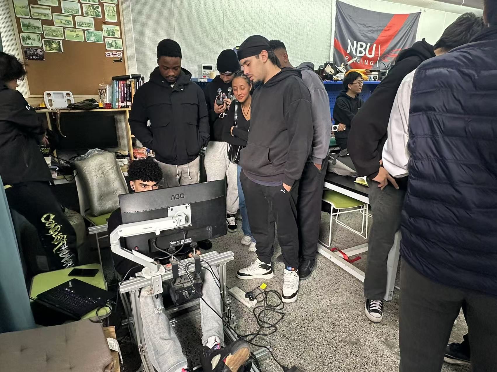 随后,在车队实验室,队长黄一鸣详细介绍了赛车E20的制作过程,请小朋友们亲身体验了赛车制作工艺和严谨流程。模拟器驾驶环节将气氛推入高潮。小朋友们兴奋地坐上了模拟驾驶座椅,“调节座椅,握紧方向盘,紧盯每一个弯道”。在仿真的赛车在屏幕上飞驰,孩子们仿佛真的成为了一名小小赛车手,感受围场中的速度与激情。