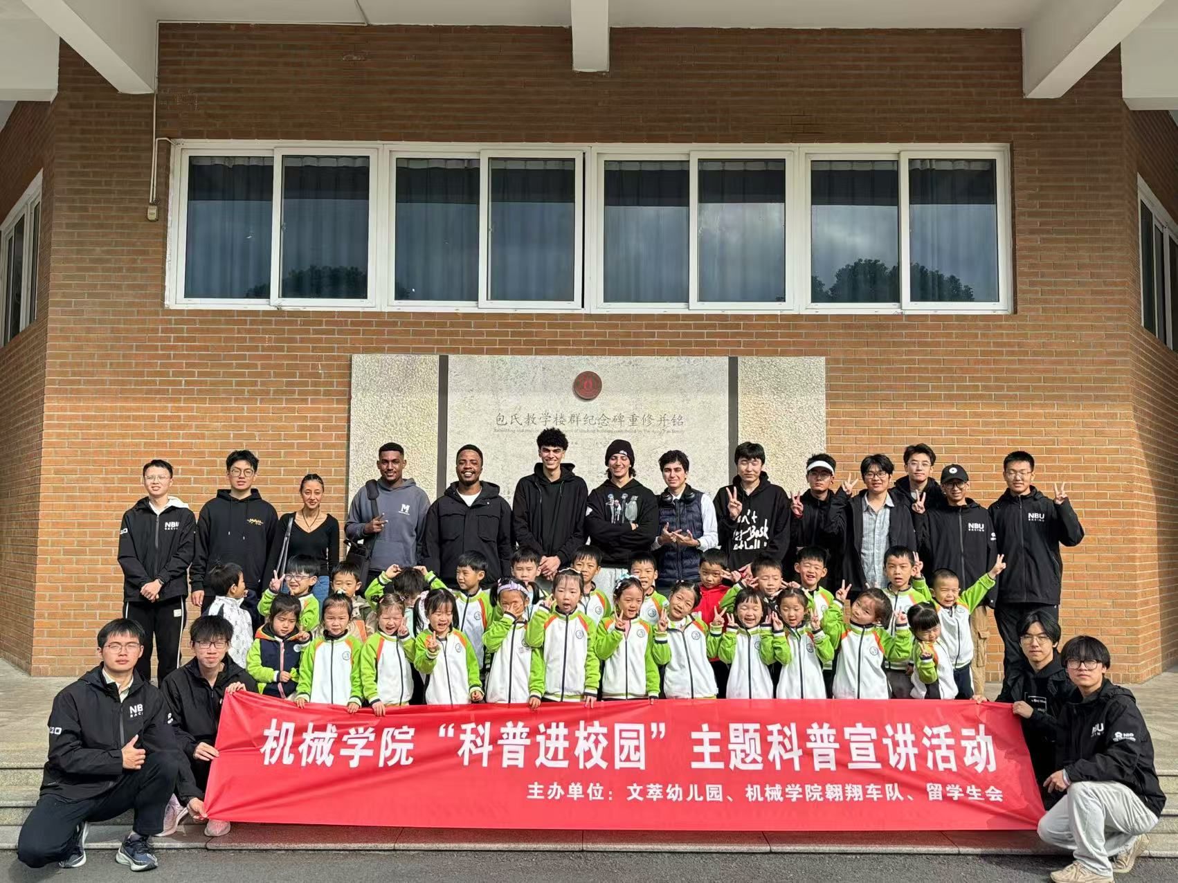 翱翔车队联动院留学生会、文萃幼儿园开展“科普进校园”主题宣讲活动,共30余位大小朋友一起体验赛车文化。