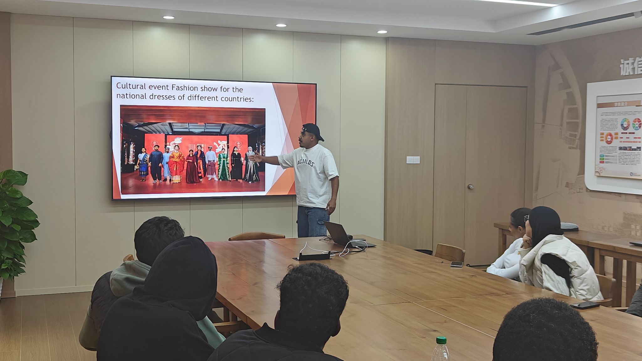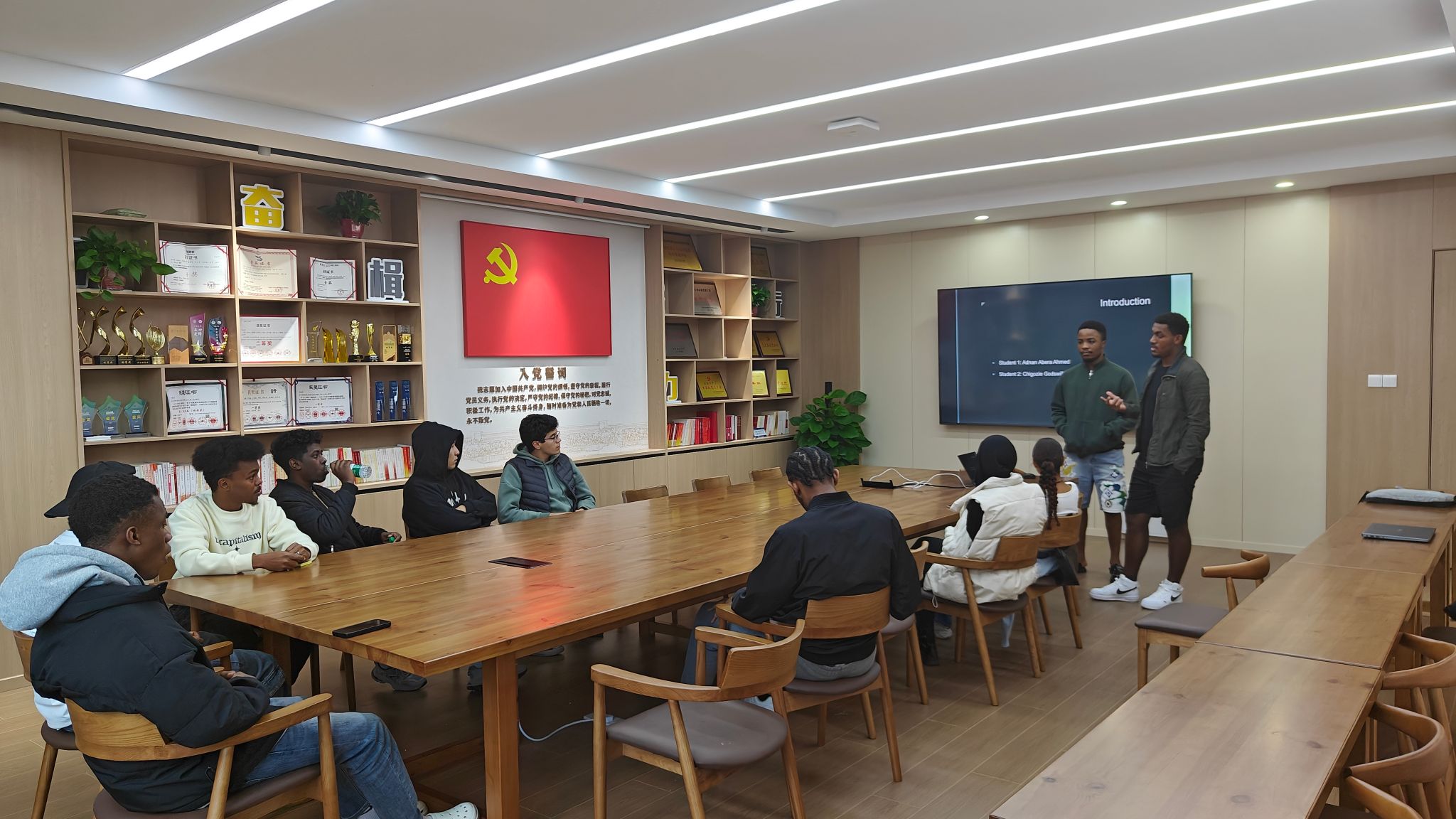 2021级留学生ADNAN ABERA AHMED、CHIGOZIE GODSWILL ONWUGBENU和2023级留学生FARID SADIK ISSA、AL-ATTAS HUSSEIN ABDULLAH SALEM进行在校生活、大学规划、校园活动等方面的经验分享。
