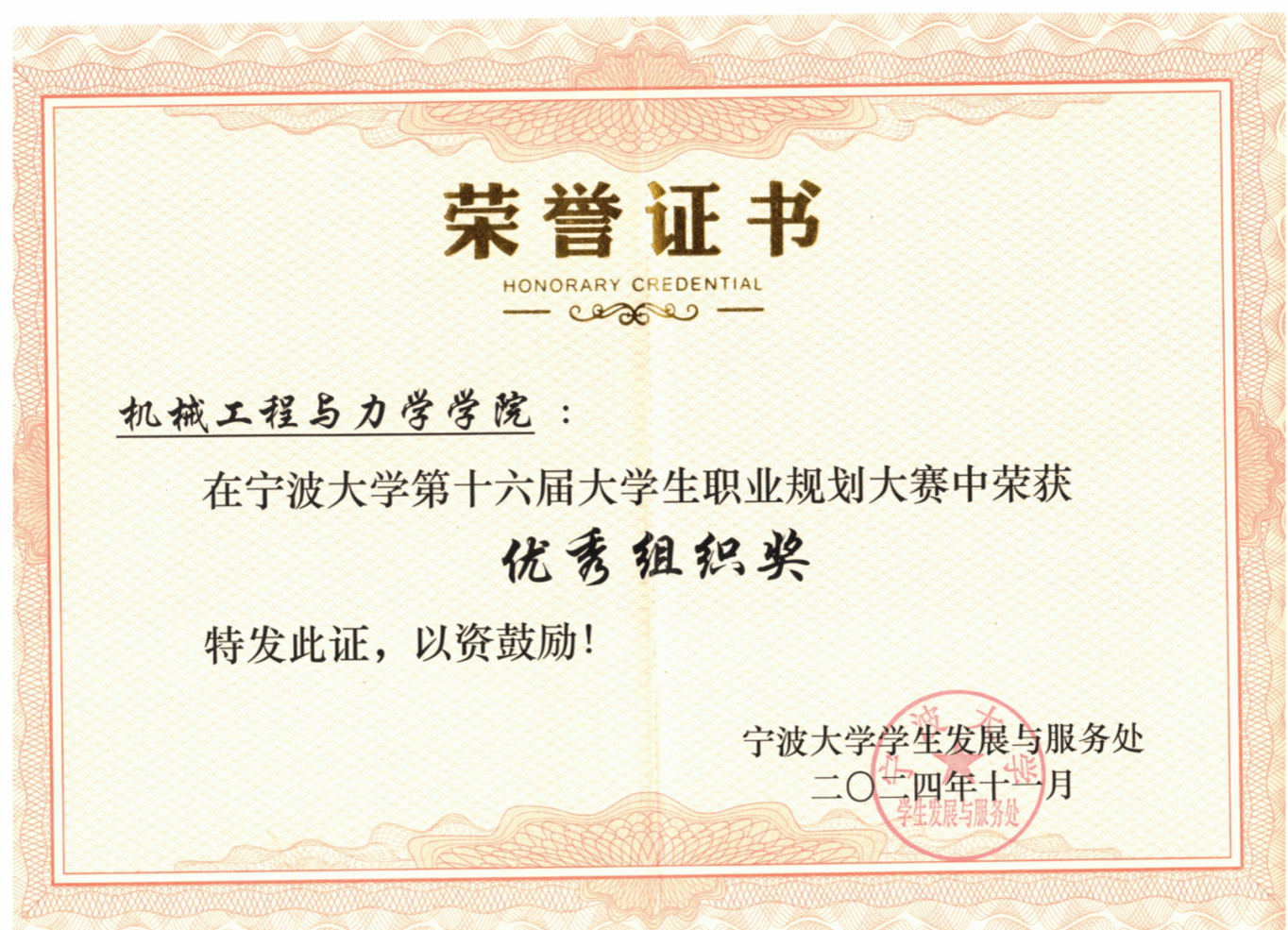 近年来,学院高度重视大学生职涯规划工作,先后组织开展“名企高管话职场”、“绣山启航”等系列活动,认真筹备推进职业规划大赛。2024年,在校友企业——宁波韵恒智家科技有限公司的大力支持下,学院成功组织了院赛,并由13名同学获推参加校赛,6名同学闯入决赛现场,斩获校赛一等奖3项,二等奖3等奖,三等奖4项,一等奖获奖数量位居全校并列第二,理工科学院并列第一,且自2015年以来首次荣获“优秀组织奖”(全校仅8个学院)。后经过层层选拔,首次有2名同学获推参加省赛,分别参加赛事成长赛道和就业赛道(研究生组)项目,推荐人数位居学科性学院并列第一。