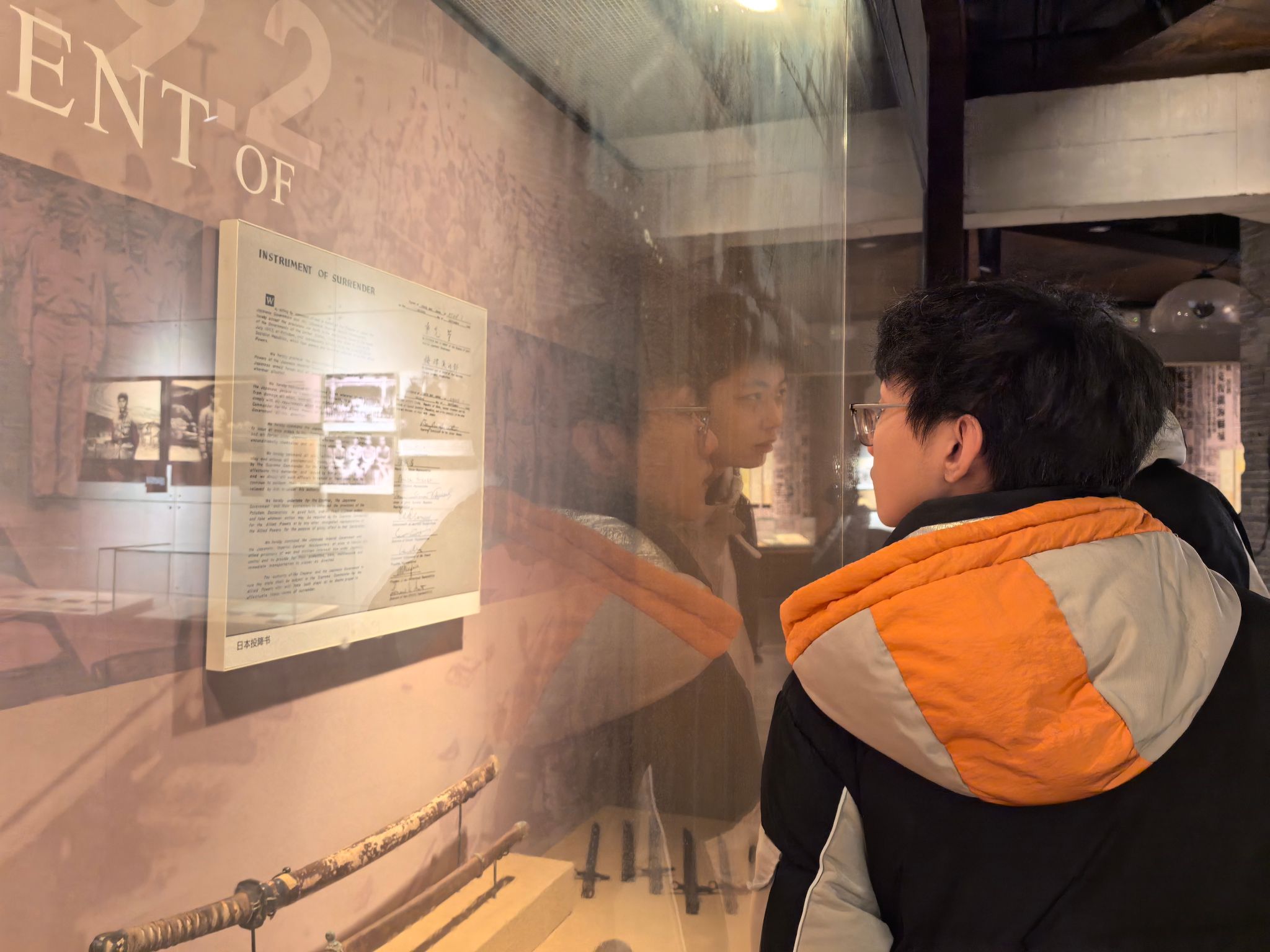 同学们仔细观察着一挺挺机枪舰炮,观察着镇海百姓受到攻击和奋起反击的大量实物证据,大家看得尤其认真,表情也愈发严肃。现场询问同学们印象最深的展品是什么,刘泽堃同学看到了一批批奉命守关的大将,侯占胜同学看到了清军落后的军备武器,翟旭同学注意到二十多岁就壮烈殉国的年轻烈士们……大家心中都感慨万千。