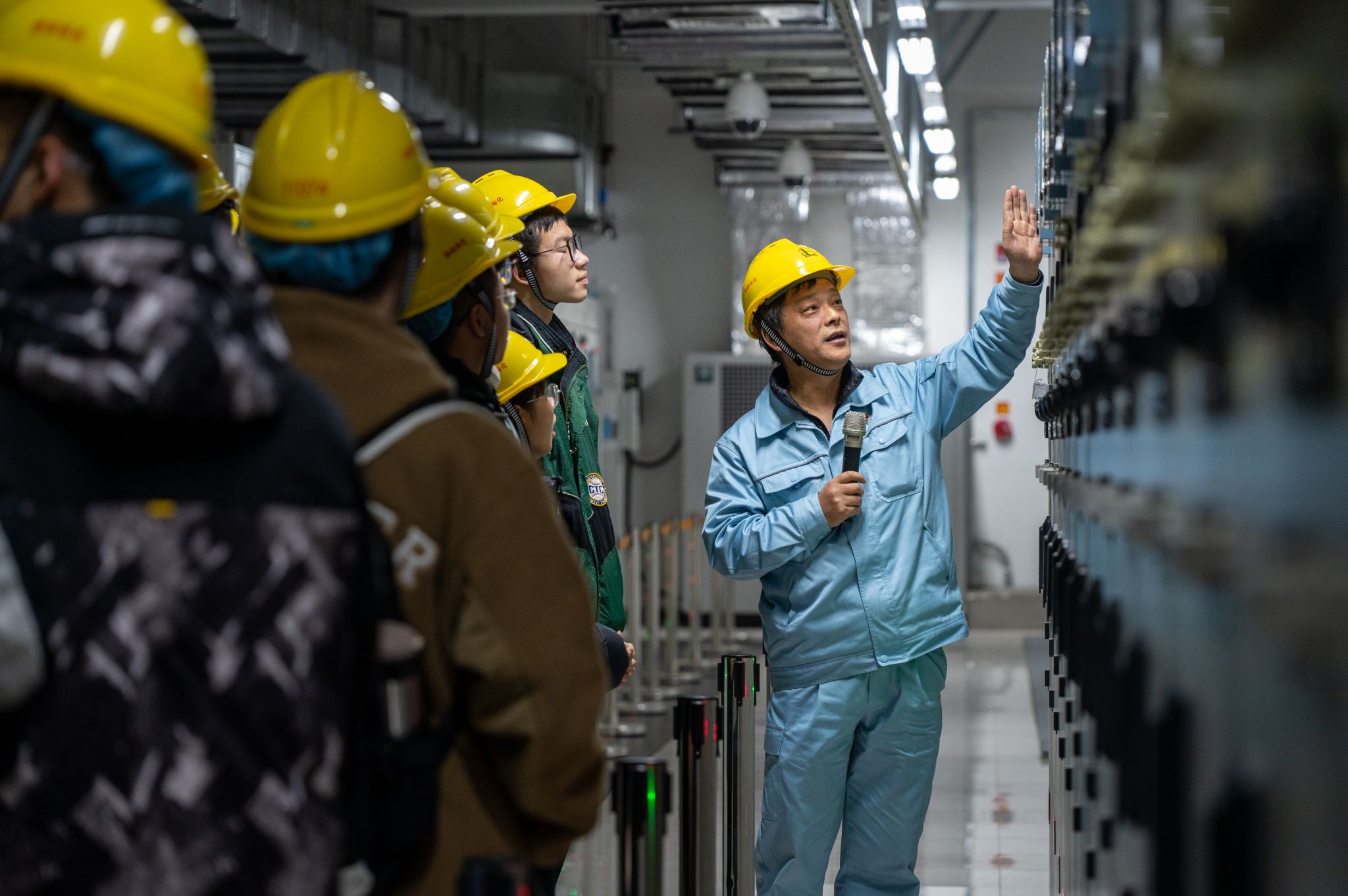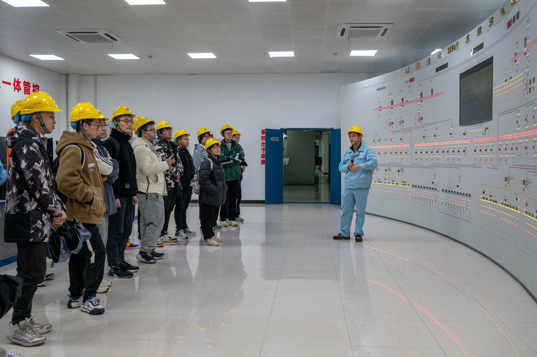 随后,团队来到镇海炼化的220千伏无人值守智能变电站。作为中国石化智能化、绿色化发展的前沿阵地,该变电站自2020年起,通过技术团队的不懈努力,攻克了多项技术难题,实现了“零碳”无人值守智能变电站的建设。这一成就不仅减少了二氧化碳排放,还极大提升了设备管理效率,成为行业可持续发展的典范。变电站的智能化系统,不仅能够替代传统12人值守配置,还能大幅提升设备管理效率,保证系统的高效、稳定运行,体现了智能化技术在环保领域的真章。