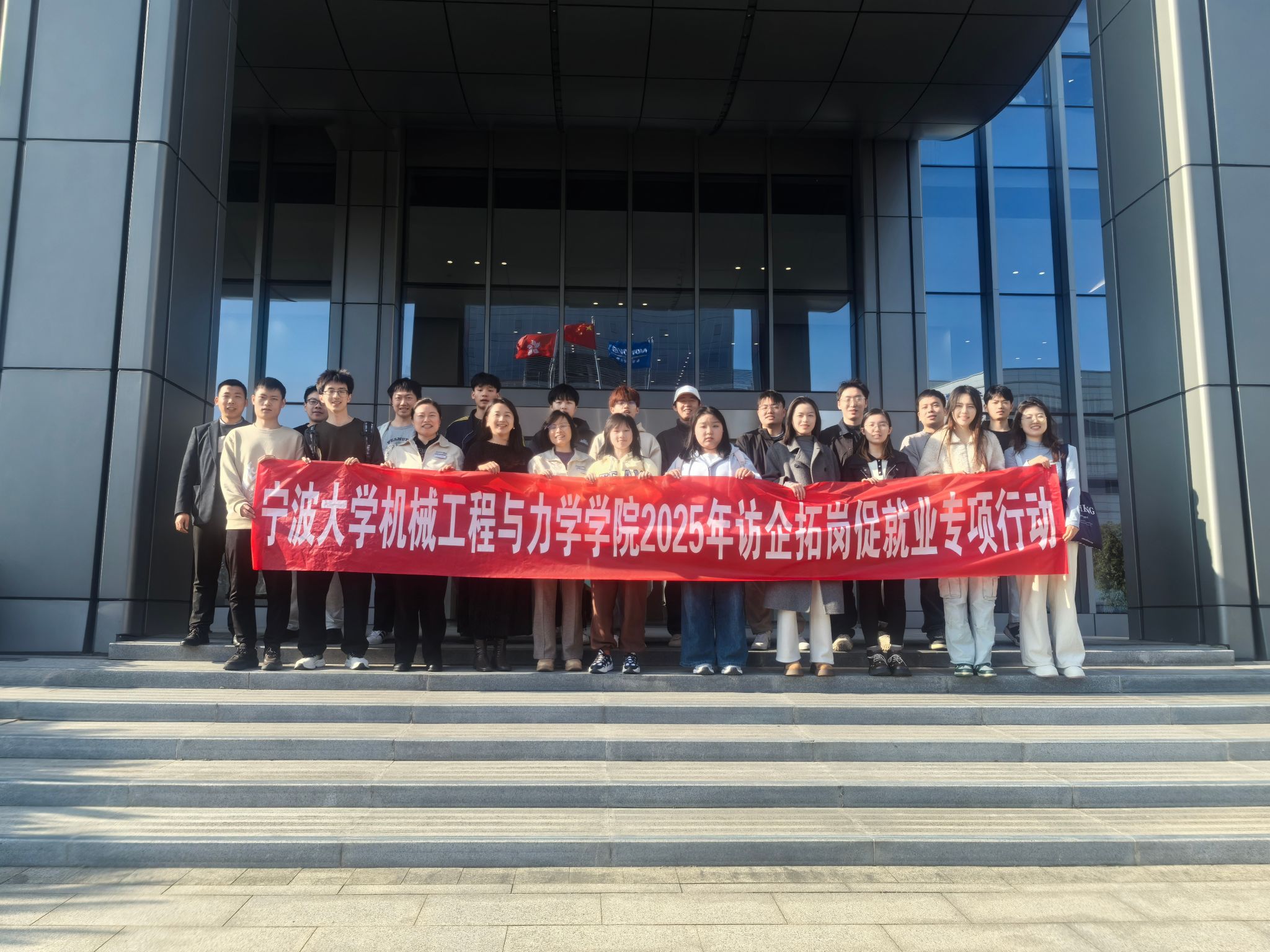 党委副书记沈妍伶、学工办主任洪松等师生一行20余人前往宁波永新光学股份有限公司(以下简称“永新光学”)开展访企拓岗促就业专项行动。