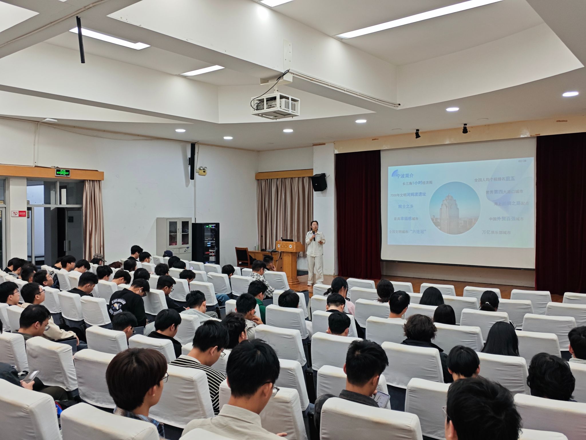 在绣山工程楼三楼报告厅举行大学生就业能力提升专题培训会,来自全院本硕不同年级的150余名同学共同活动。