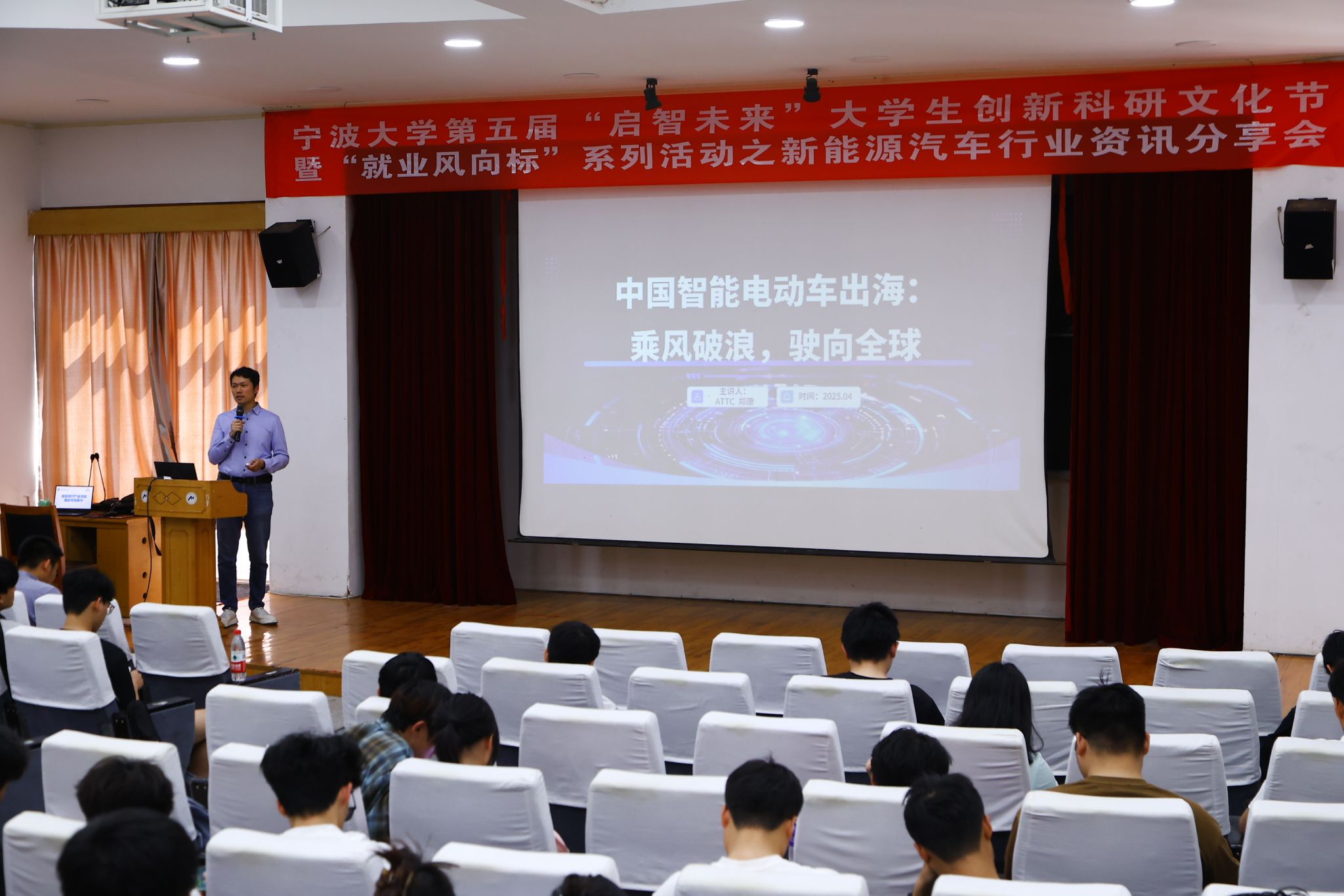 在绣山工程楼三楼报告厅举行新能源汽车行业资讯分享会。学院副院长郑宇轩和在校本硕学生共160余人参加活动。分享会由学工办/研工办主任洪松主持。