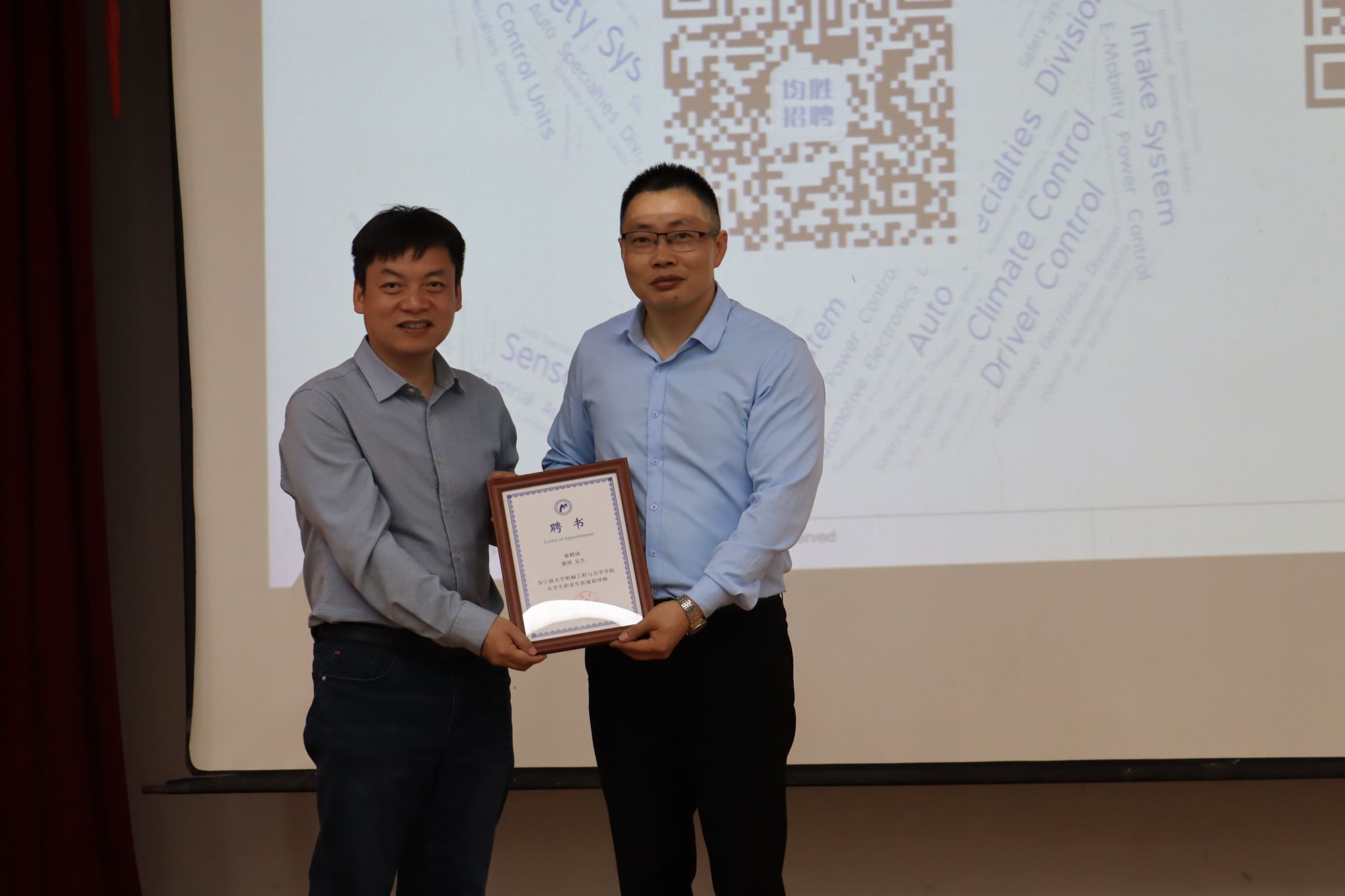 为持续深化搭建学生职涯发展平台,充分发挥优质企业人力资源优势,特聘请其为学院大学生职涯规划指导导师。彭文飞副院长代表学院为谢炜经理颁发导师聘书。