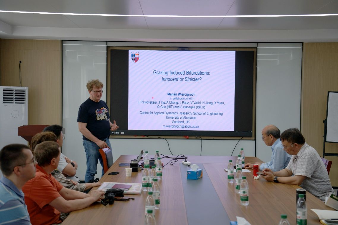 图文:李琼 极端环境交叉力学研究中心5月15日下午,英国爱丁堡皇家学会院士,国际权威学术期刊International Journal of Mechanical Sciences主编,波兰科学院技术科学部委员,英国阿伯丁大学应用动力学研究中心创始主任Marian Wiercigroch教授受邀做客老王论坛 极端环境交叉力学研究中心,在龙赛理科楼南楼519会议室,为学院师生带来一场题为“Grazing Induced Bifurcations: Innocent or Sinister?”的学术报告,此次报告会还吸引了来自俄罗斯库班国立大学Evgeny V. Glushkov教授和Natalia V. Glushkova教授一行参与,报告会由张传增院士主持,学院相关专业师生积极参与交流学习。 Marian Wiercigroch教授在分享中深入探讨了擦边分岔这一现象,重点阐述了其对碰撞系统、共振加强钻、转子系统等工程系统的作用机理与潜在影响。他进一步深化了与会师生对相关工程领域中动力学问题的理解,并详细介绍了针对非线性工程问题所采用的数学建模方法。此外,Marian Wiercigroch教授还强调了理论与实验模型与实际工程问题之间的紧密联系,并鼓励与会师生积极参与讨论,共同探索非线性动力学领域的未知。 Marian Wiercigroch教授的报告内容详实、观点独到,引发了与会师生的热烈讨论。他鼓励学生勇于探索未知,培养创新思维,为解决工程实际问题贡献自己的智慧和力量。此次分享会不仅是一次知识的盛宴,更是一次思想的碰撞,为师生提供了一个难得的学习和交流平台。