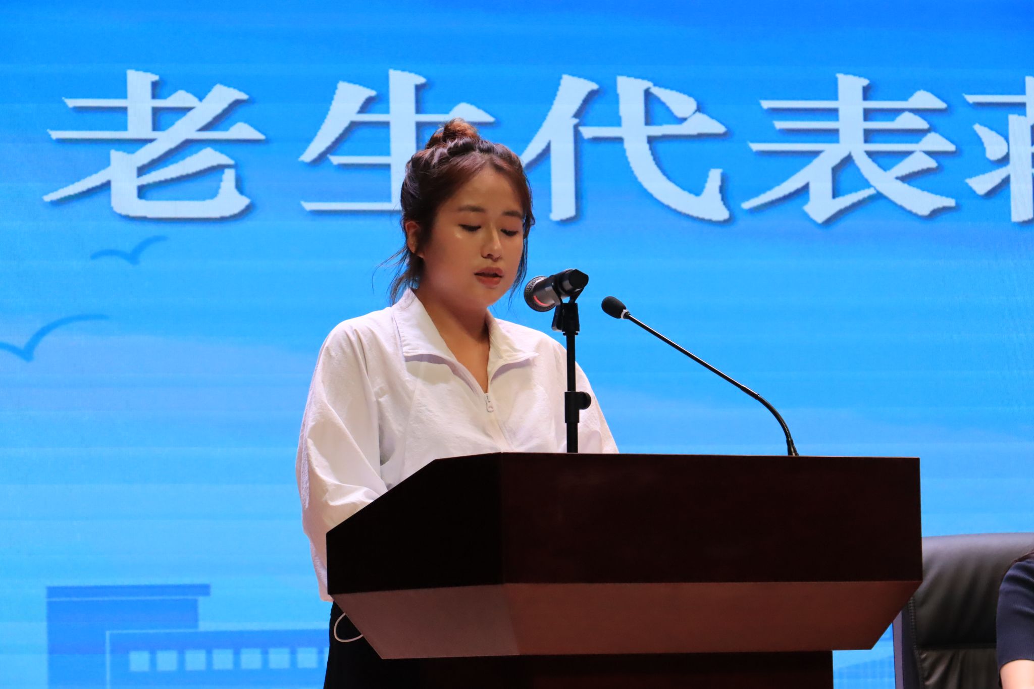 23级机械国贸的蒋启圣同学作为老生代表分享了学习经验,建议新生注重学科交叉学习,提前了解学科竞赛,投身科研实践,锤炼综合素养。24级工程力学的杨浛同学新生代表则表达了精研专业、深耕课堂、联动实践的决心,鼓励大家在新领域乘风破浪,追逐理想。
