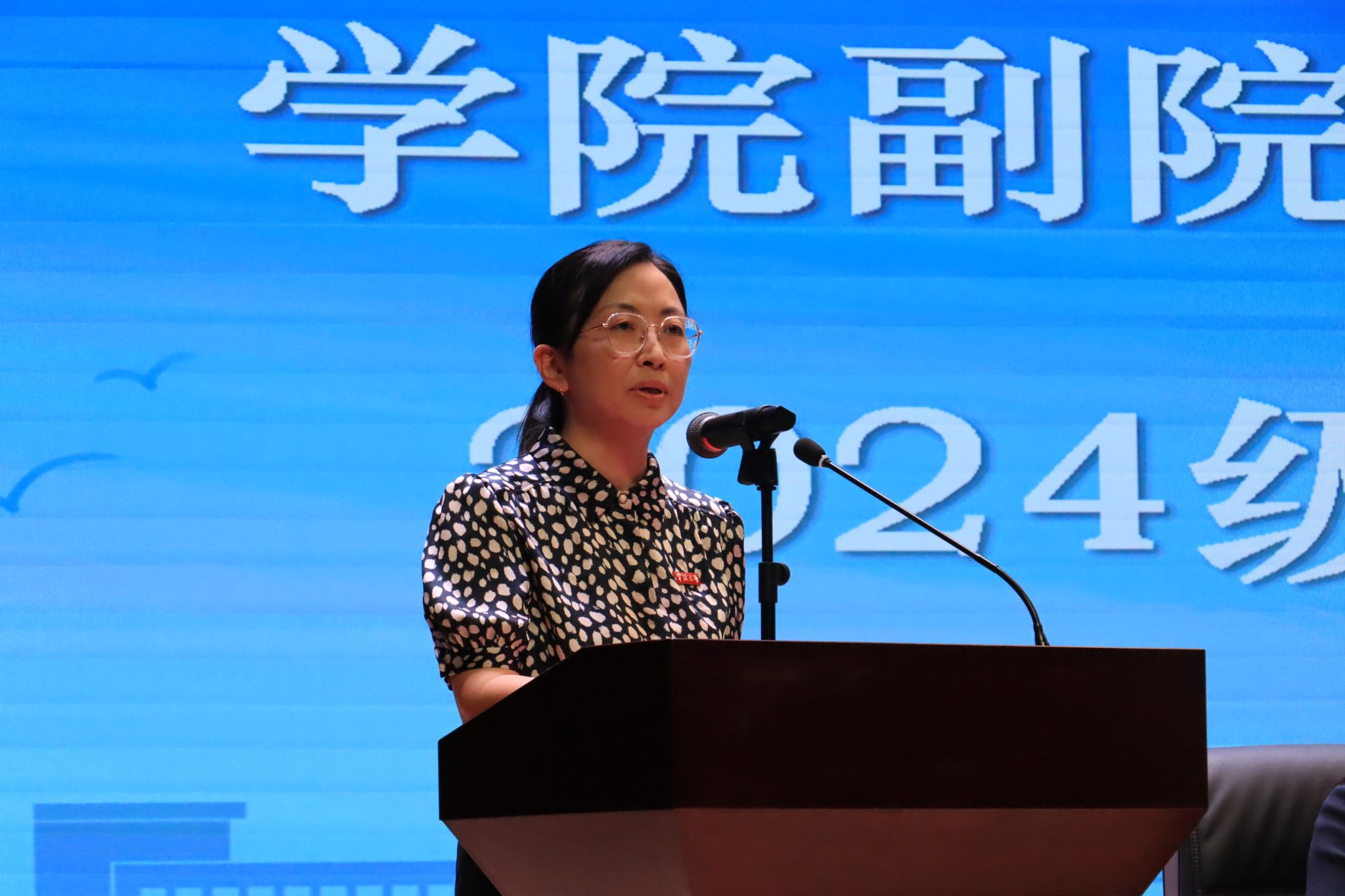会议伊始,学院党委书记王智腾致欢迎辞,为同学们介绍学院情况,并根据“诚信、严谨、创新、服务”的院训,向同学们提出四点希望:第一,做到忠诚,要真诚对待学业的各个环节,杜绝学术不端行为,同时尊重师长,关爱同学;第二,做到严谨,要在学习过程中保持高度的定力和逻辑性,像解谜一样依靠实证和逻辑来掌握知识;第三,做到创新,要有批判性思维,敢于质疑,充分利用学院资源,了解前沿技术和学术动态,提升眼界和格局;第四,做到服务,要明确理论的学习最终要服务于实践,鼓励学生服务国家发展战略,彰显新时代青年的挺膺担当。