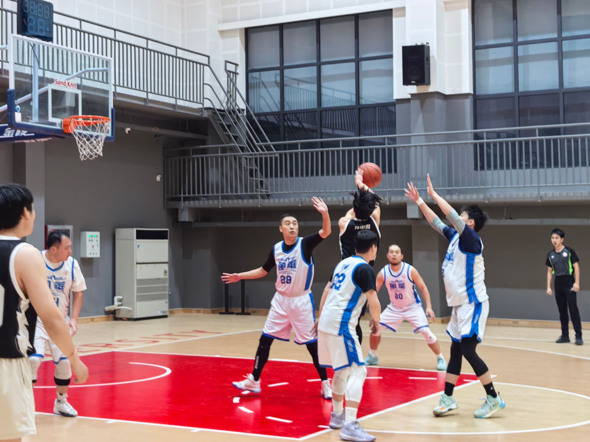 凭借默契配合与顽强斗志摘得桂冠。为弘扬体育精神,增强师生互动,学院特别组织此次师生友谊赛,让新生在与师长的同场竞技中感受校园温暖,凝聚集体力量。比赛一开始,双方进行跳球,随着篮球精准落场,双方队员迅速进入状态。教师队凭借扎实的基本功、娴熟的战术配合占据场上主动,老师们精准的三分球点燃全场,引来场下观众阵阵欢呼;新生队则以爆发力和快速反击为优势,队员林威凭借灵活的走位突破防线,接连上篮得分,展现出机械学子敢闯敢拼的锐气。