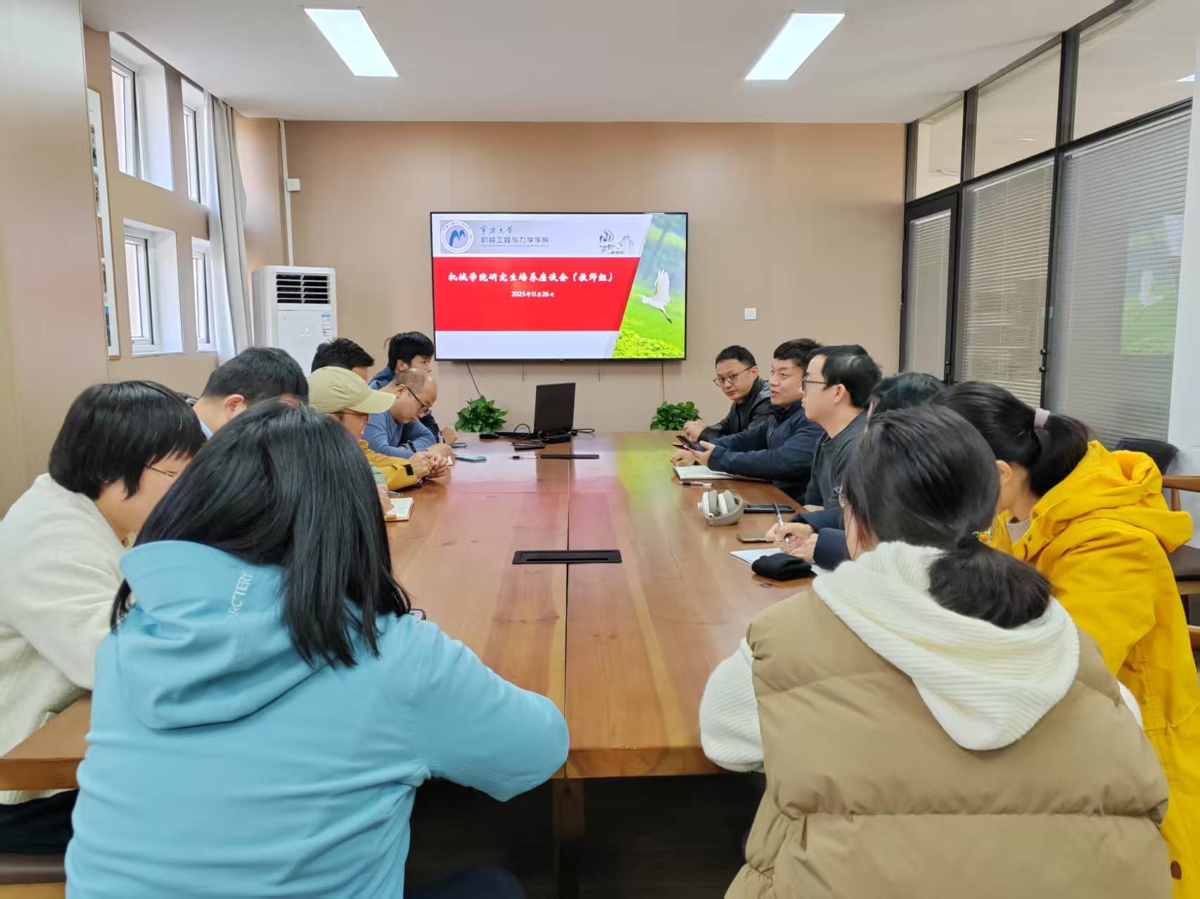在绣山楼220召开2025年度研究生培养教师代表座谈会。会议由分管研究生教育副院长彭文飞教授主持,学院研究生教育督导组组长陈江瑛教授、各研究所教师代表及研究生秘书参加了本次会议。