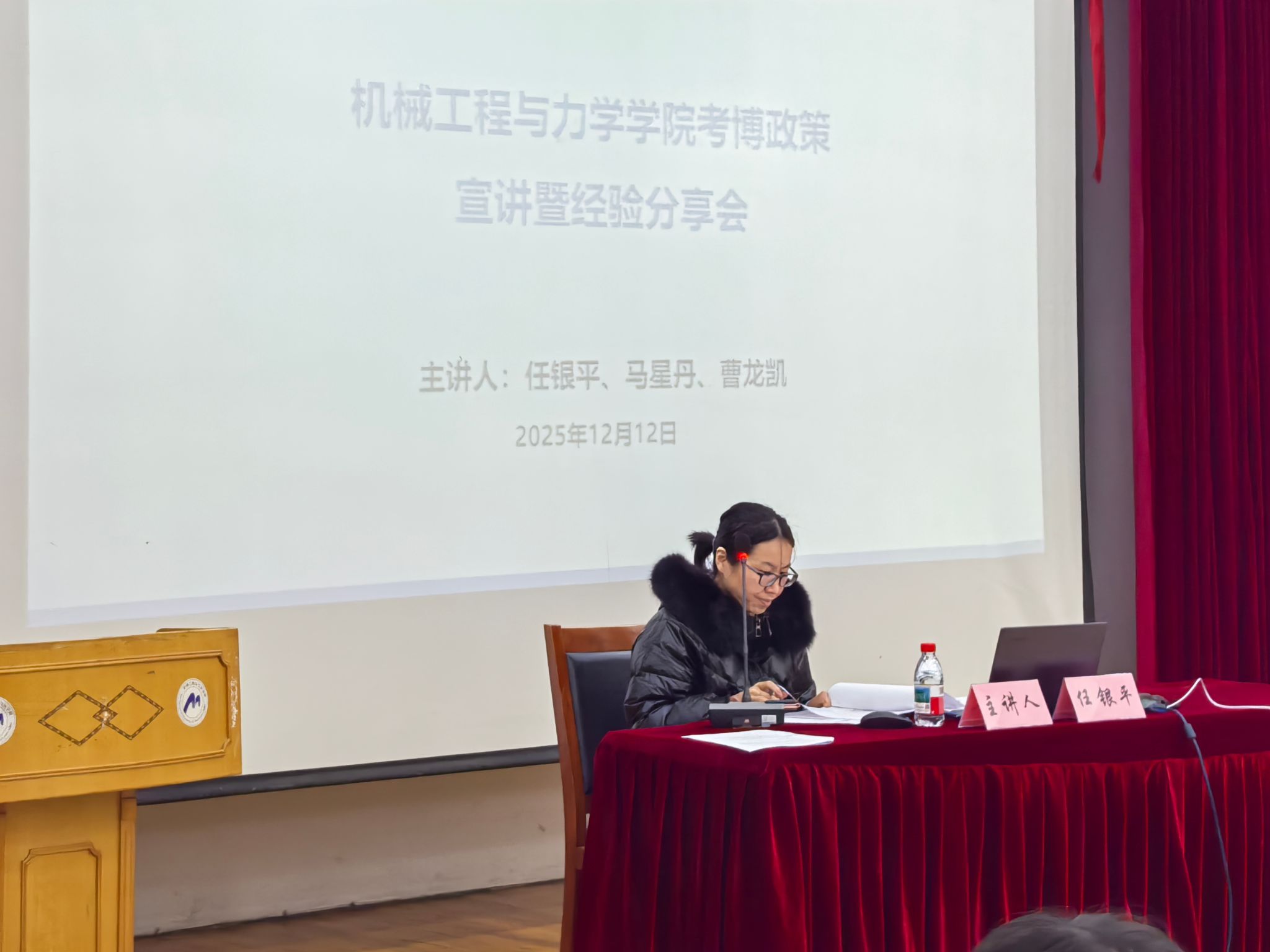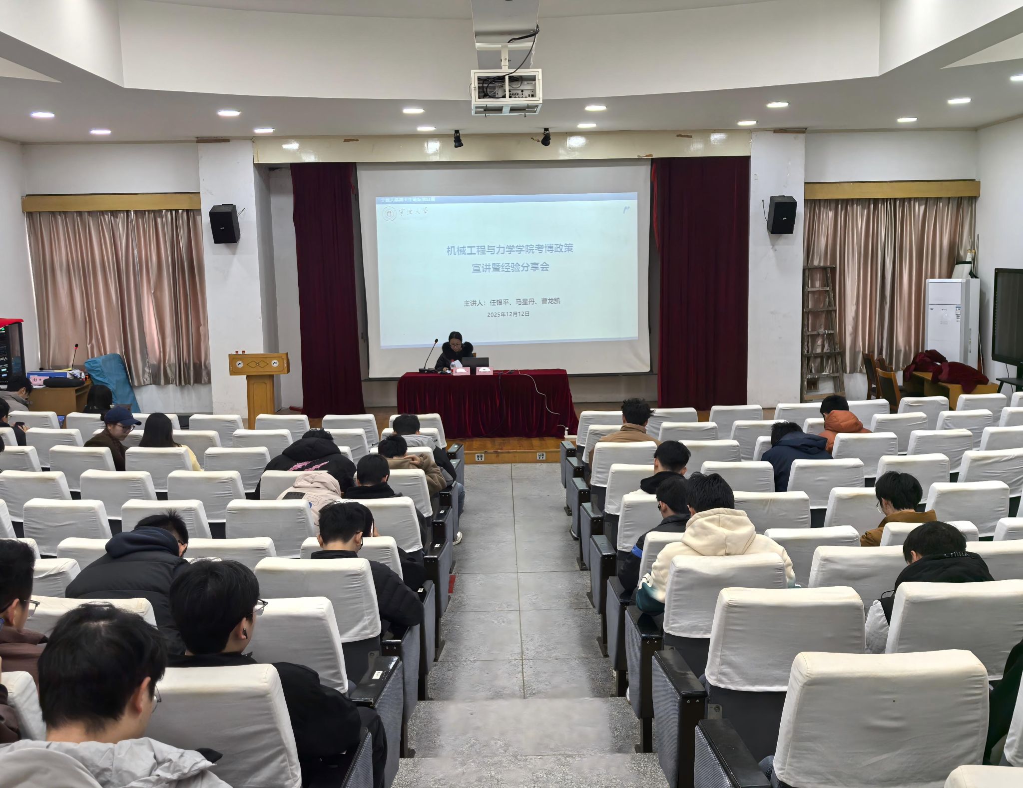 在绣山工程楼三楼举行考博政策宣讲暨经验分享会,会议邀请研究生办主任任银平老师做政策宣讲,博士生马星丹、曹龙凯同学分享自身考博经验,共150余名研究生参会。
