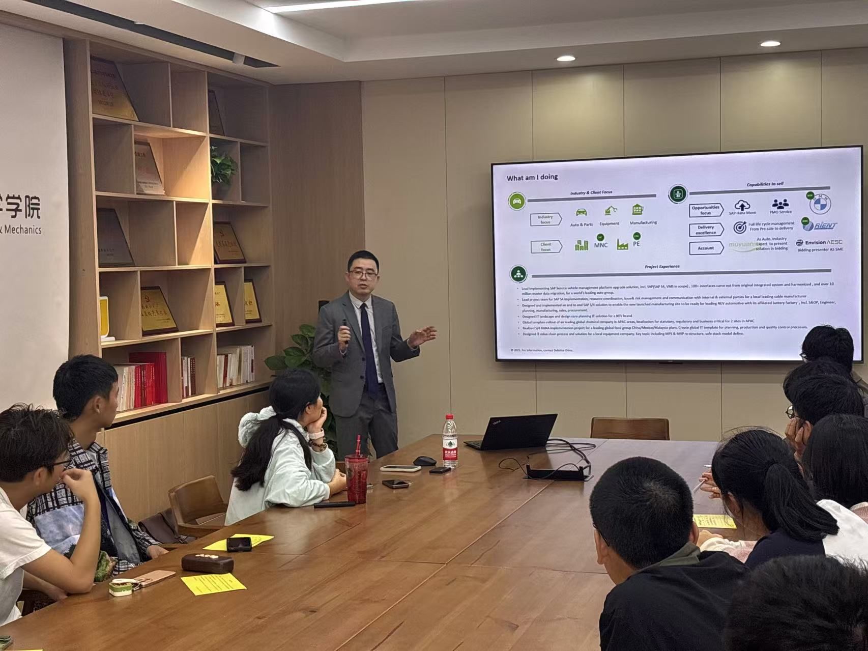 11月15日, “智‘汇’一流,校友分享汇”活动在绣山工程楼208举行,本次活动邀请了2005级工业工程专业杰出校友徐轶作为主讲嘉宾,为在校学子带来了一场精彩纷呈的分享会。徐轶校友现任德勤中国事务所的高级经理,以其丰富的职场经验和独到的见解,为现场师生带来了深刻的启发。