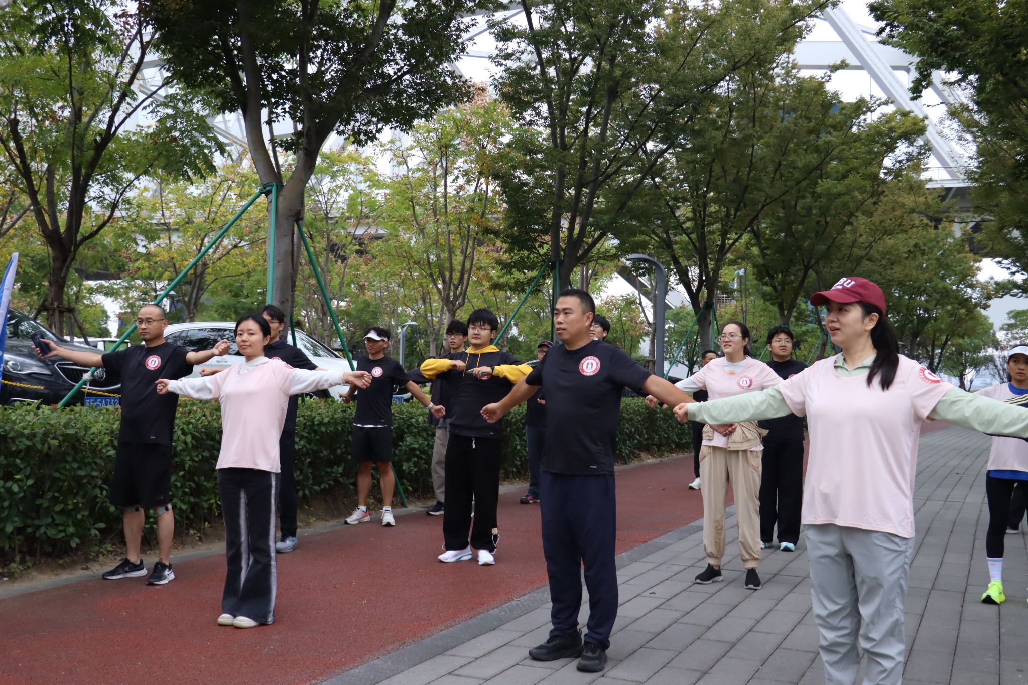 上午9时,乐跑活动正式拉开帷幕。队伍沿着风景如画的江岸步道迤逦而行,形成了一道亮丽的流动风景线。大家身着统一的纪念服装、贴着纪念袖章,精神抖擞,步伐矫健。
