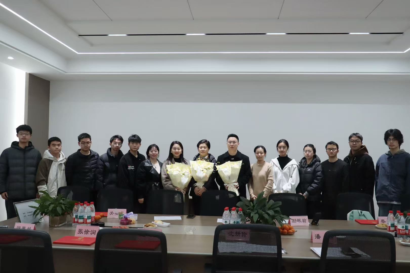 讲话结束后,张萍女士签署了捐赠协议,正式确立了新一轮的资助合作。为表达由衷的谢意,受助学生代表向张萍女士、励岷翰先生敬献了鲜花,沈妍伶副书记则代表学院向捐赠方赠送了捐赠证书。随后,全体受助学生与捐赠方嘉宾共同切开了寓意美好相遇与感恩的蛋糕,现场气氛温馨热烈。
