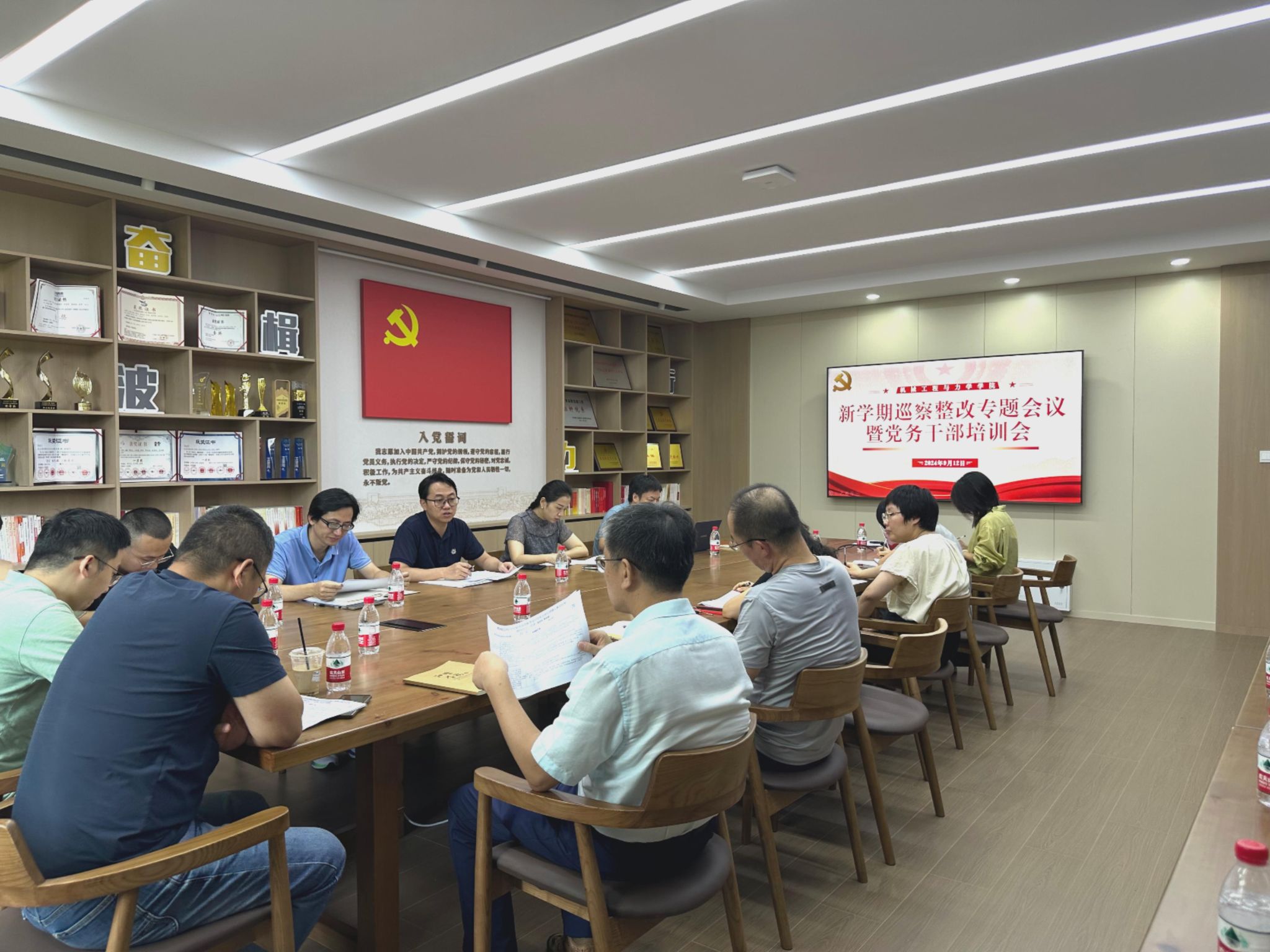 在绣山工程大楼208会议室召开巡察整改专题会议暨新学期第一次党务干部培训会,部署落实校党委巡察反馈意见整改任务。会议由学院党委书记王智腾主持。