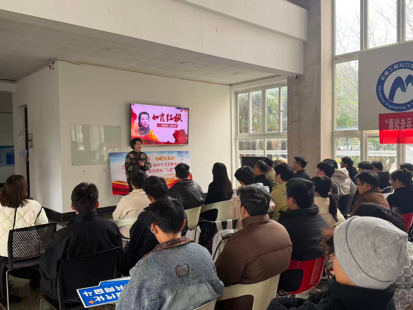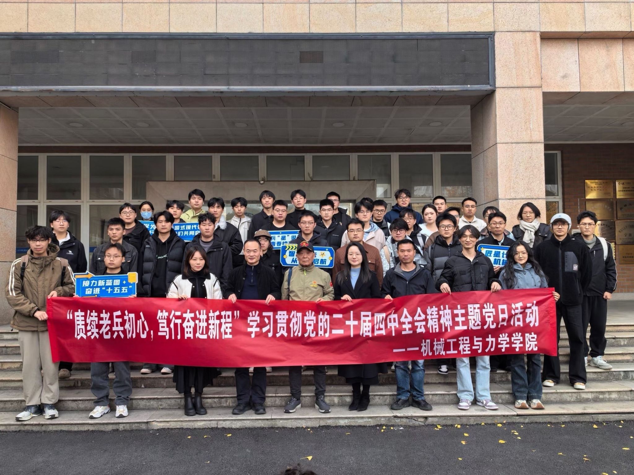 12月3日,学院学生党建中心联合老兵“星”说宣讲团开展“赓续老兵初心,笃行奋进新程”——学习贯彻党的二十届四中全会精神宣讲活动,旨在全面学习贯彻党的二十届四中全会精神,引导青年学子将个人理想融入国家发展大局。镇海区退役军人事务局局长、老兵“星”说宣讲团负责人于利军局长、老兵“星”说宣讲团的各位宣讲员们以及学院学生党支部共50余名人员参与。