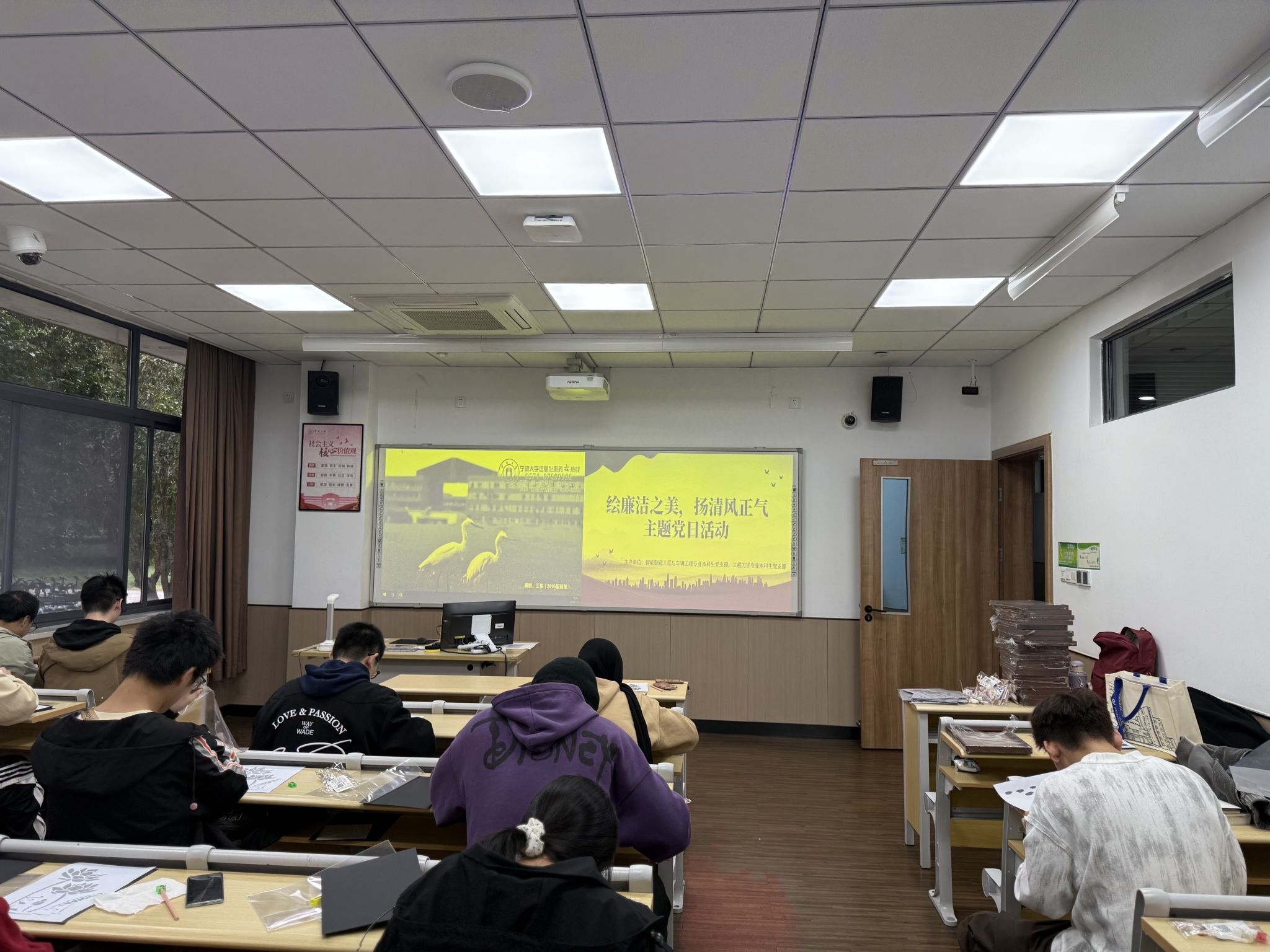 智能制造工程与车辆工程专业本科生党支部与工程力学专业本科生党支部于11月13日下午联袂举办了“绘廉洁之美,扬清风正气”主题党日活动。此次党日活动以创作非物质文化遗产工艺“烧箔画”为载体,旨在向学生党员传达清正廉洁、自律自强的理念。