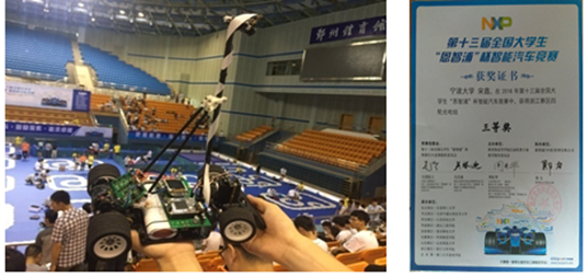 (3)采用“平台+模块”的课程体系,强调“宽口径,厚基础,强能力,高素质”。 推进“以赛促学、赛学融合”创新人才培养。指导学生参加“巴哈汽车大赛”、“本田节能车大赛”及“智能车大赛” ,进行创新能力培养。指导学生参加科研活动,并发表论文和申请专利。