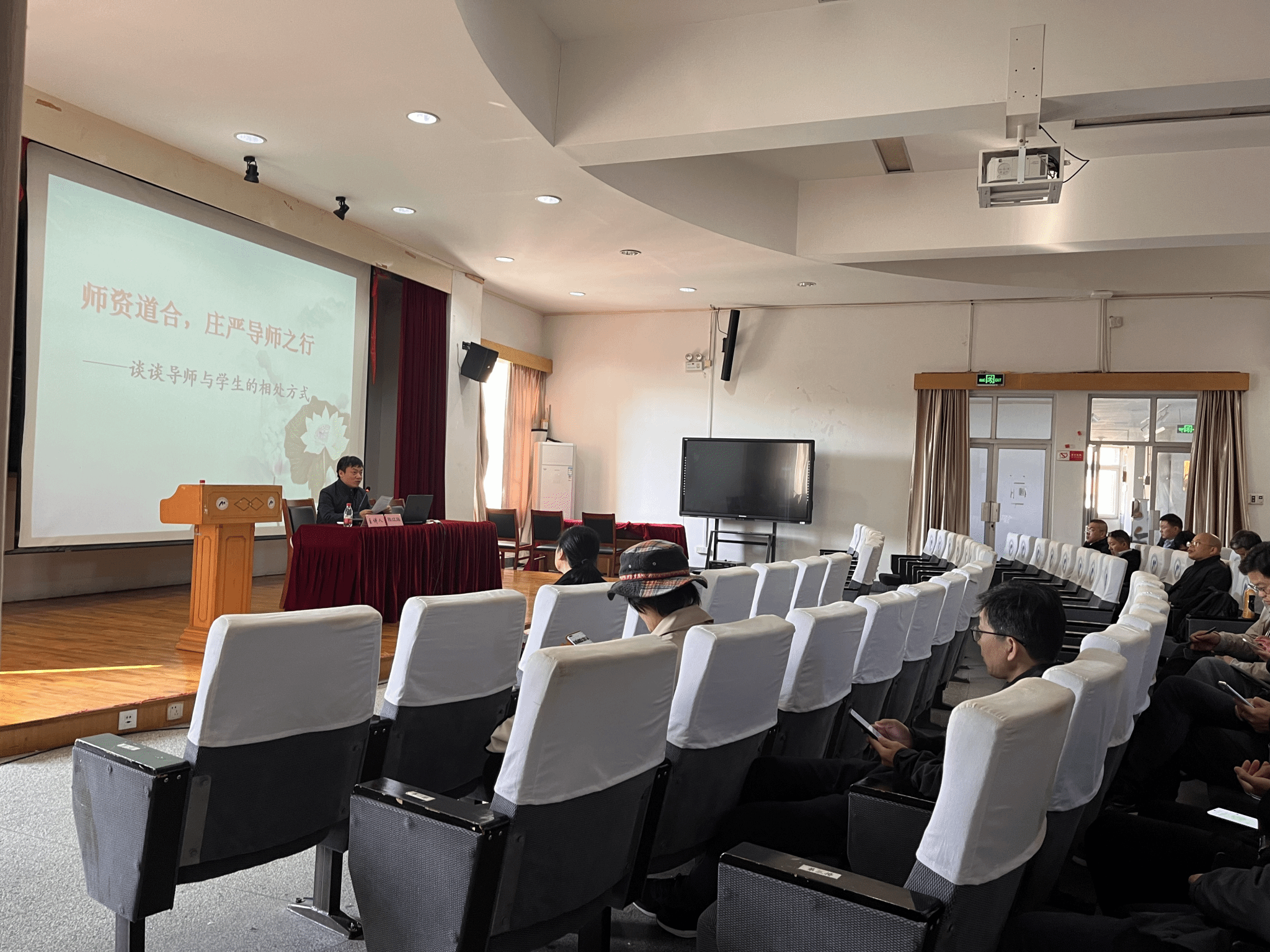 在绣山楼三楼报告厅举办了2024年研究生导师专题培训活动。本次培训邀请到陈江瑛教授作为主讲人,学院党委书记王智腾、副院长彭文飞、副书记沈妍伶及学院研究生导师参加了本次培训。