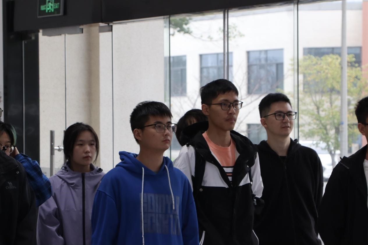 参观伊始,所有同学聚集在大厅里观看实验室的简介视频,23级力学博士生舒典强作为此次的讲解员,配合宣传视频,为大家简要介绍了实验室的成果。在提及前不久发布的大桥防撞顶级成果、浙江大学等知名学府倾力援建、承担课题含金量逐年递增时,讲解员不由得面露笑容,自豪满满。