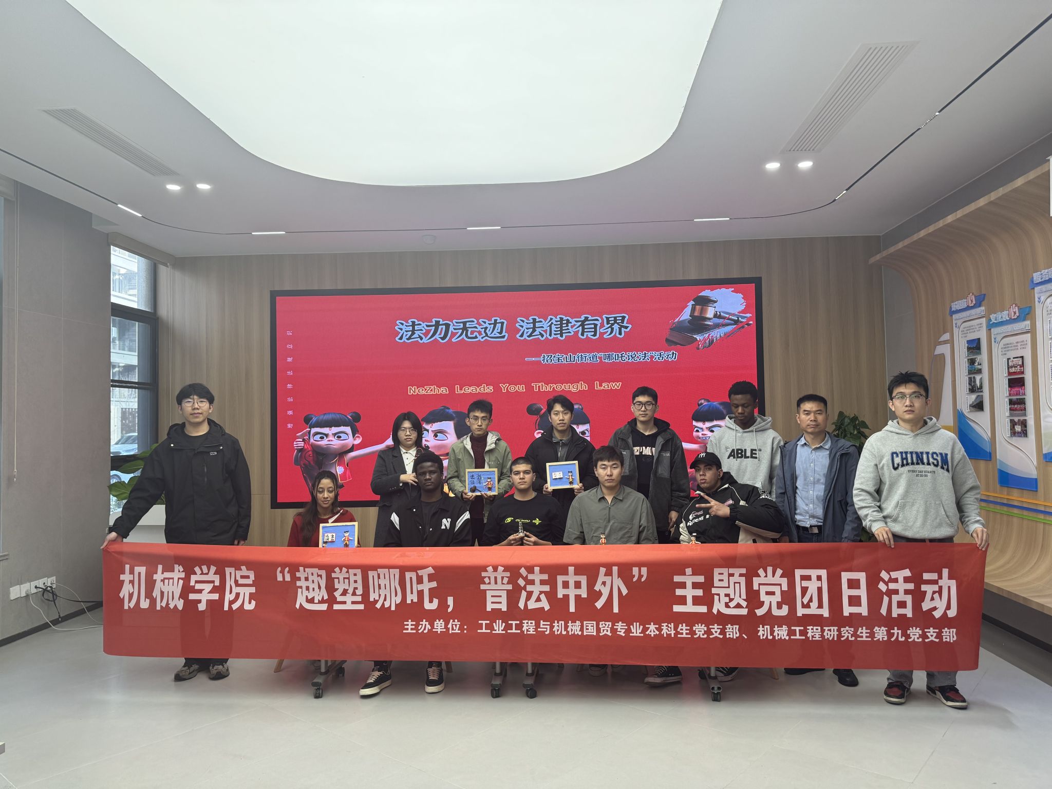 2月28日,机械工程研究生第九党支部、工业工程与机械国贸专业本科生党支部联动留学生会赴招宝山街道开展“趣塑哪吒,普法中外”主题党团日活动。本次活动以普法教育与传统文化相融合为特色,通过实地参观、专题汇报和非遗体验三个环节,深化党员对法治精神的理解,促进文化传承与创新实践,共10余名中外学生一起参与。