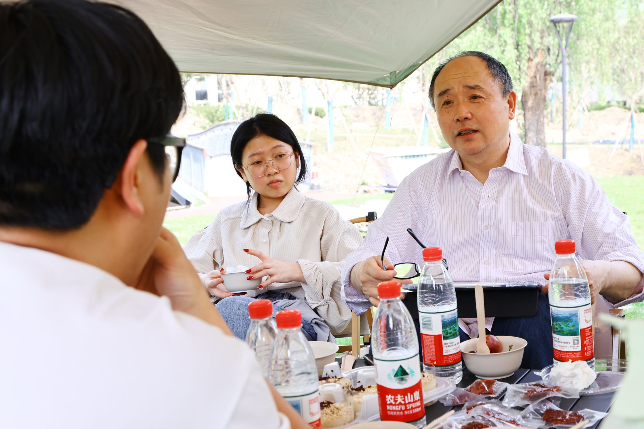 活动现场氛围轻松愉悦,师生们沐浴在明媚的阳光下,品茶畅谈。陈老师既回应了学生在专业学习中的困惑,又为日常困扰提供了切实建议,在场同学纷纷表示收获颇丰,在这样轻松的氛围中获得了意想不到的启发。