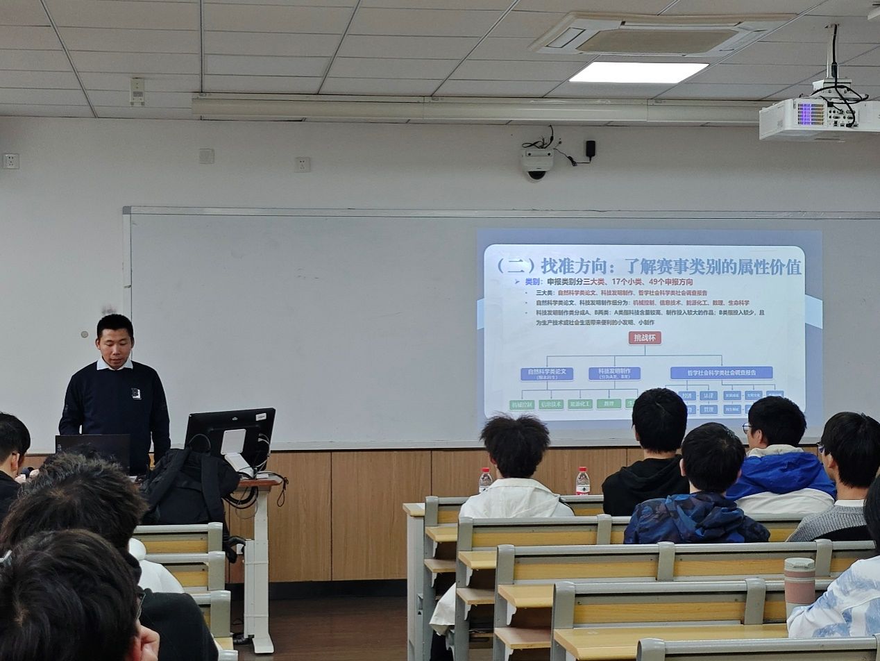 近期老王论坛 第十一届“挑战杯”大学生课外学术科技作品竞赛通知发布,为了让更多备赛师生把握比赛导向、了解比赛规则、掌握备赛方法,2024年10月30日下午,老王论坛 举办“绣山训练营”系列活动之“挑战杯”大学生课外学术科技作品竞赛备赛动员会。学院邀请了往届国赛、省赛获奖项目作展示分享,并邀请国赛获奖团队指导教师洪松老师分享如何备赛。活动伊始,洪松老师对“挑战杯”比赛进行了全面讲解,细致分析了规则要求、评审标准,强调了挑战杯对于培养学生创新能力和实践能力的重要意义,鼓励同学们积极参与,并针对比赛中常见的问题和注意事项给予了宝贵建议,使同学们对挑战杯有了更清晰、深入的认识。随后,蒋镇孺和张嘉泽分别代表《银光科技——电喷打印式高性能太阳能电池片开拓者》、《“蜘蛛侦探”--应用于复杂环境救援侦测的滚爬一体式智能机器人的研制》项目作分享。从项目选题、团队组建、方案设计到实践调研,展示了优秀项目的创新点和亮点,使同学们了解了赛事呈现的底层逻辑。此外,两位同学还分享了在比赛过程中的经验和心得,包括如何应对突发情况、如何与团队成员有效沟通等。根据前期排摸学院项目团队资源与需求、同学们参赛意愿,为充分对接双方需求,选拔综合素质突出、参赛积极性较高的队员,活动特地设置“项目-参赛人”对接环节。预报名项目团队负责人依次上台,介绍项目背景、目标、当前进展以及所需人才要求等,不少感兴趣的同学纷纷提交简历,与项目团队深入交流、增进了解。自校赛通知发出后,学院高度重视,部署相关工作推介大赛、动员备赛。师生参赛热情也十分高涨,目前已有20余支项目团队、近200人参加预报名。下步学院拟举办院赛,选拔优质项目,为校赛做好准备。