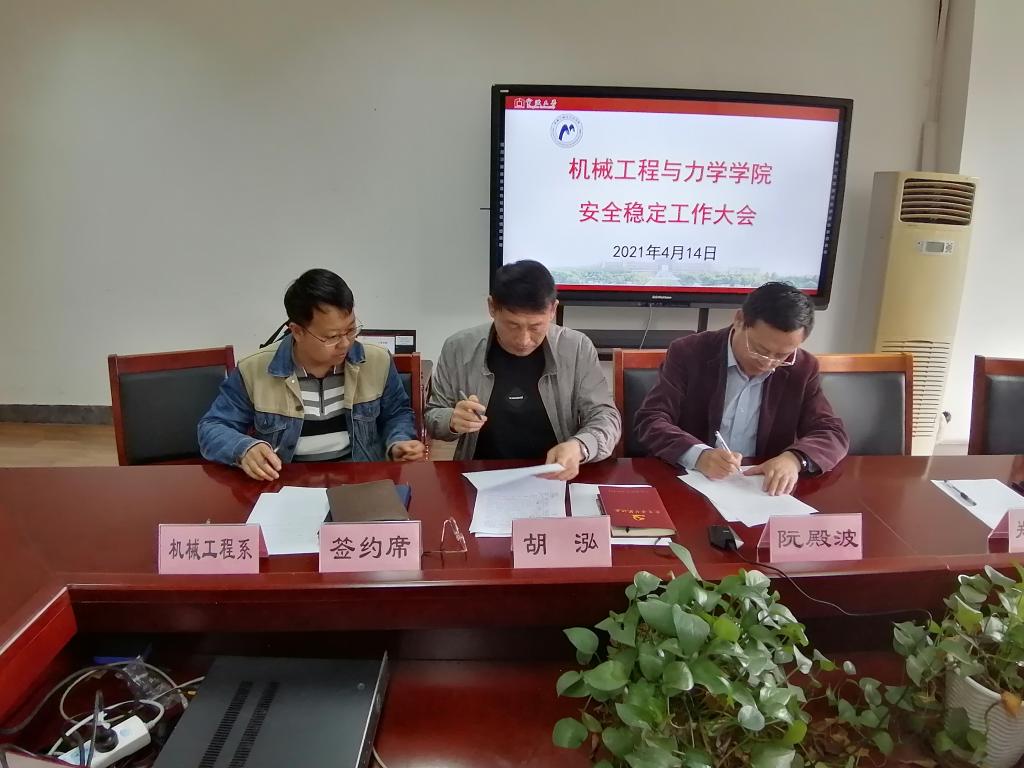 接着,学院党政主要领导与各分管院领导及学院基层组织代表机械工程系签订了创安责任书,其他各系、各科研实验室及各教学实验室创安责任书将于会后签订,层层落实安全工作责任制。