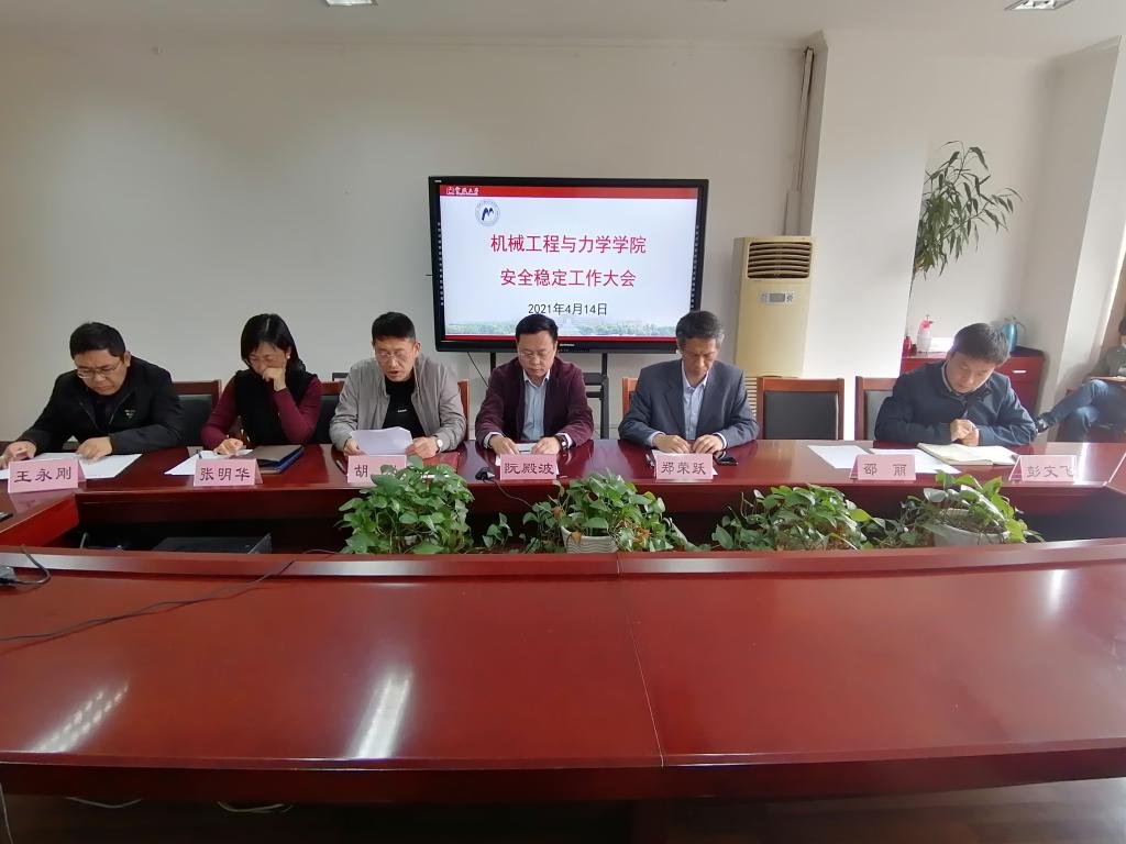首先,学院党委书记胡泓总结和布置了学院安全稳定工作,传达了学校安全稳定工作会议精神。他指出,今年是中国共产党成立100周年,是实施“十四五”规划的开局之年,安全稳定工作事关学校、学院事业发展大局,面对疫情防控严峻形势和安全稳定复杂局面,必须抓实抓好。对于2021年学院安定稳定工作,胡泓书记提出三点要求:一要继续深入学习贯彻习近平总书记关于安全稳定的重要指示精神,全面落实学校安全稳定工作的部署要求,担负起学院安全稳定政治责任,二要强化落实实验室安全运行管理规则,进一步关注关心学生身心安全,着力做安全知识宣传教育等工作,三要认真开展隐患排查和整改,坚持求真务实的工作作风,以守土有责、守土负责、守土尽责的态度,做好学院安全稳定各项工作,以和谐稳定的工作环境,为学院各项事业发展保驾护航,以优异的工作业绩迎接建党100周年。