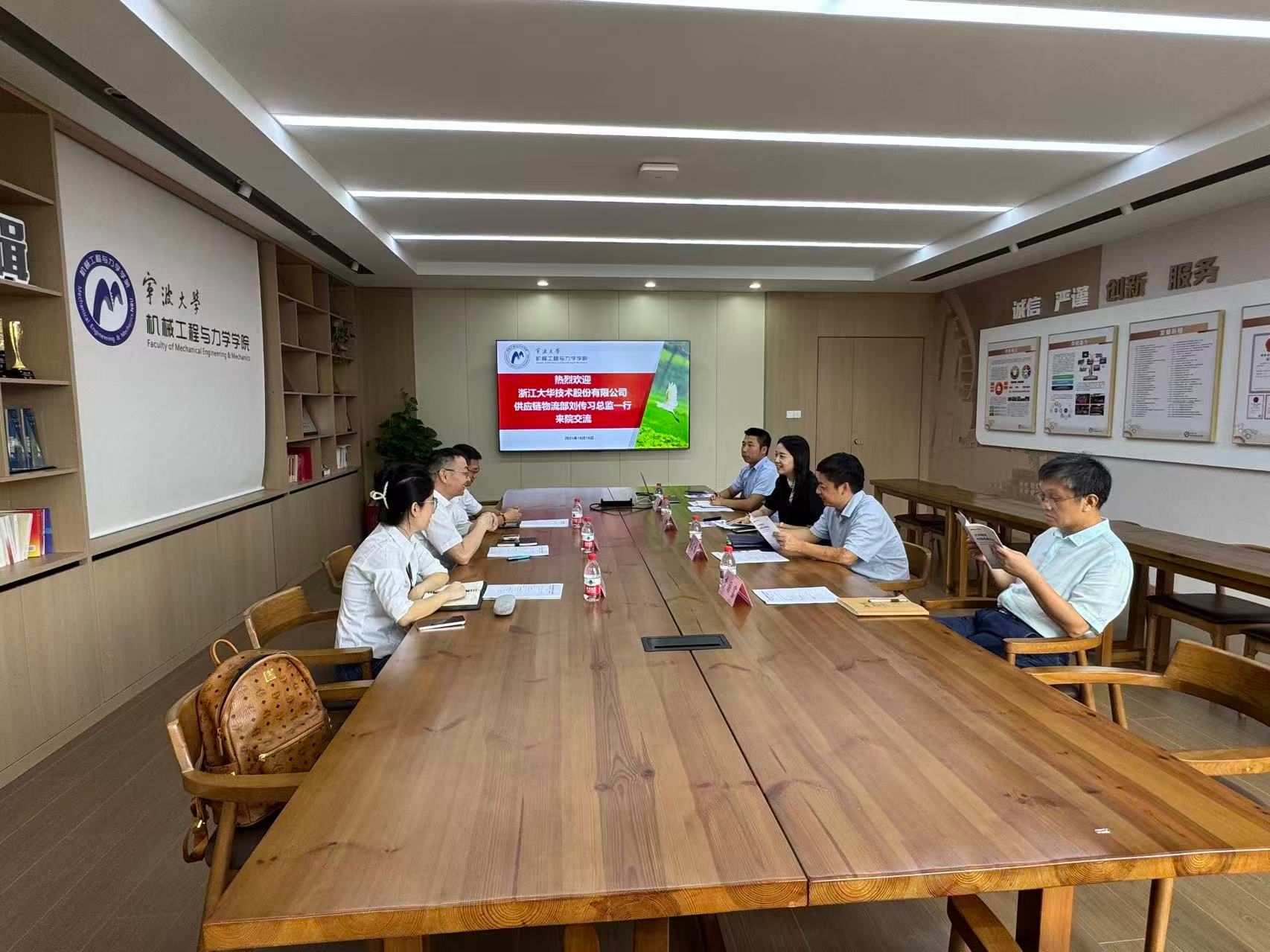 活动伊始,学院领导对刘传习总监一行来访表示热烈欢迎,并简要介绍了学院发展历程和毕业生就业情况等,表示双方有非常良好的合作基础,希望能够进一步深入开展交流,充分发挥各自特色优势,持续拓展合作深度和广度,助力高校人才的培养,实现学校、学生与企业的“三方共赢”。刘传习总监对学院的热情招待表示感谢,并简要介绍了大华股份的历史沿革、业务范围等,详细阐述公司供应链管理人才的迭代优化方案,并热忱欢迎学院领导师生来企业交流,期待与学院有更深层次多样化的合作机会,共同促进地方经济发展和人才高质量培养建设。会上,双方还围绕学生专业生产实习、课程设计、技术研发和项目课题等内容开展交流,深入交换意见。双方均表示,要加强联系沟通,共同深化推进校企合作。