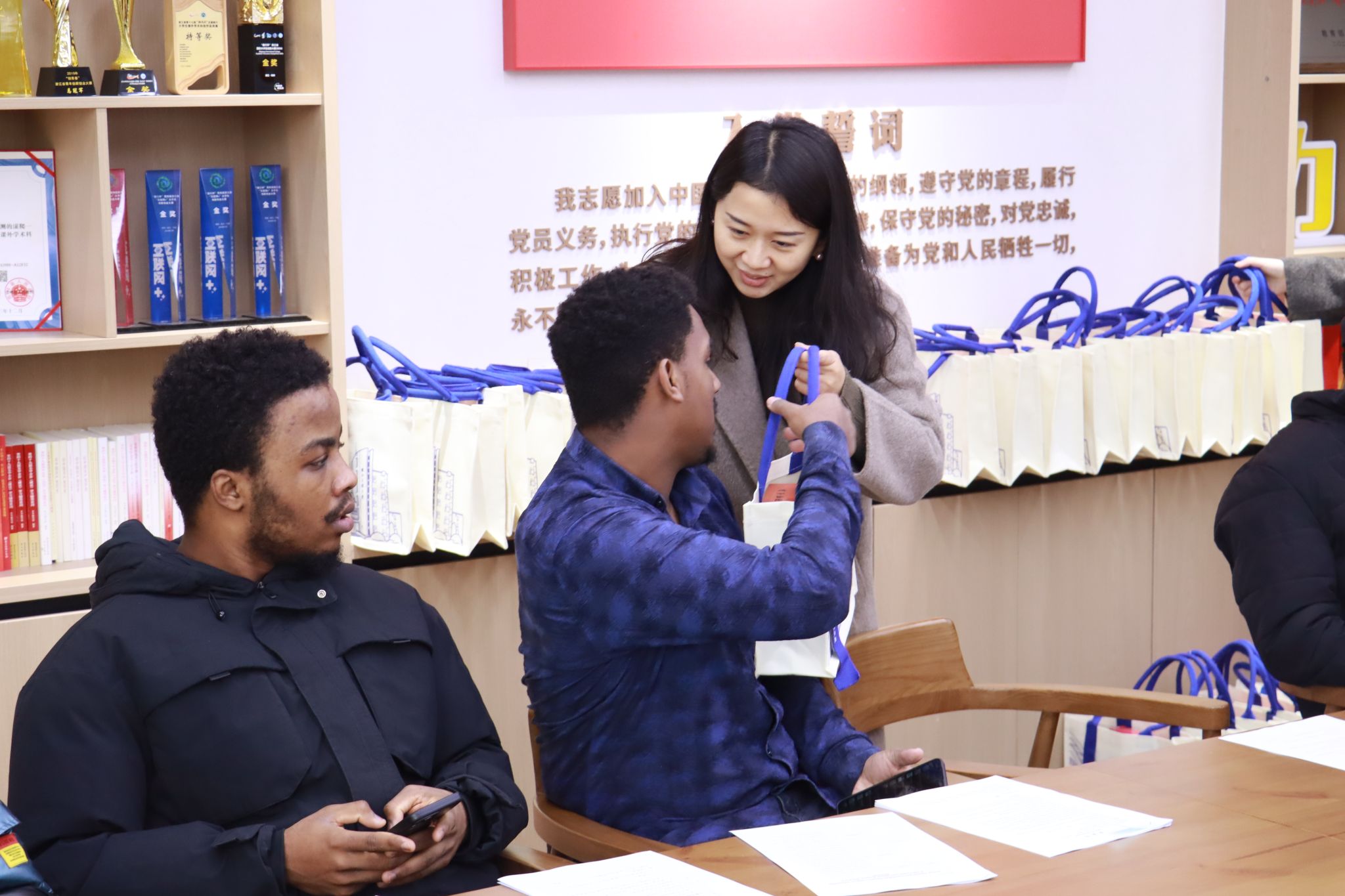 沈妍伶老师代表学院表示了慰问,给全院国际学生送上新春祝福和新年慰问品,同时也提出了三点要求。第一,严格遵守校园管理制度,提高安全防范意识,明确“保证自身安全健康是对学校和中国负责”。第二,充分利用期末和假期进行合理规划,在提升自己的同时,多帮助他人,多做有意义的事。第三,遇到困难或突发情况要第一时间联系学院,寻求帮助。