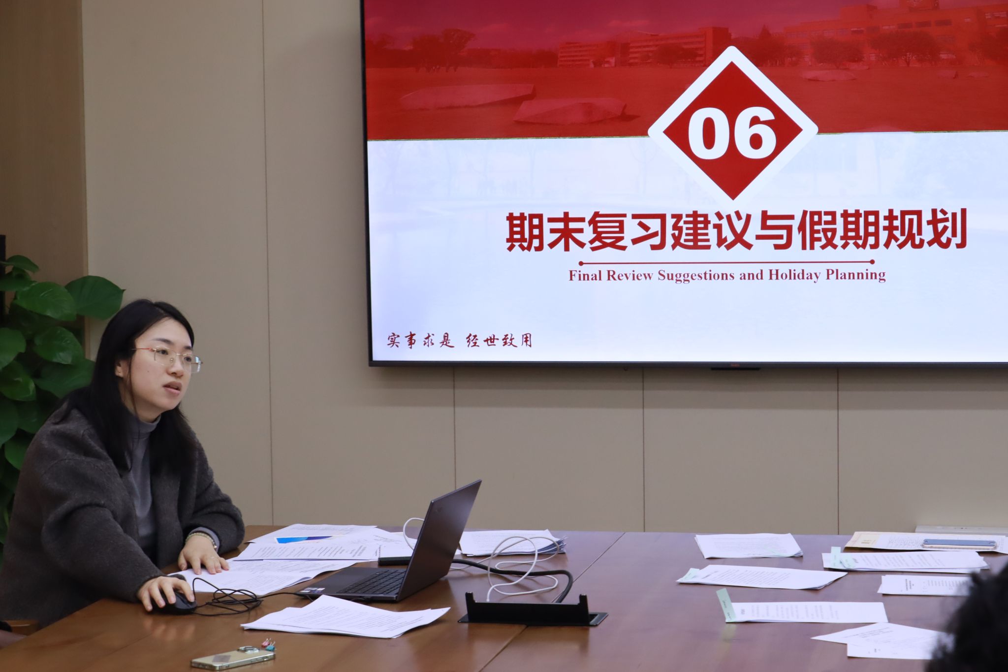 晏程程老师主要从交通、消防、校内外住宿、出行请销假等方面,强调了国际学生近期安全注意事项,并结合了学校相关要求,对期末考试各项具体纪律要求进行了强调,并对各年级期末复习提出了建议。